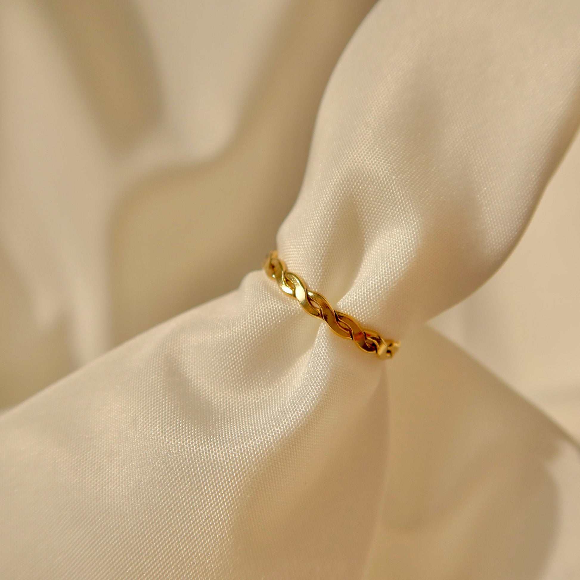 This dainty and unique gold filled braided rope ring is a perfect everyday statement ring. It’s simple yet exquisite that makes a perfect stacking ring. 14k gold filled material guarantees long lasting shine and gold. They are safe in the shower too! Just remember to keep it away from chemicals such as lotions, perfume and soap.