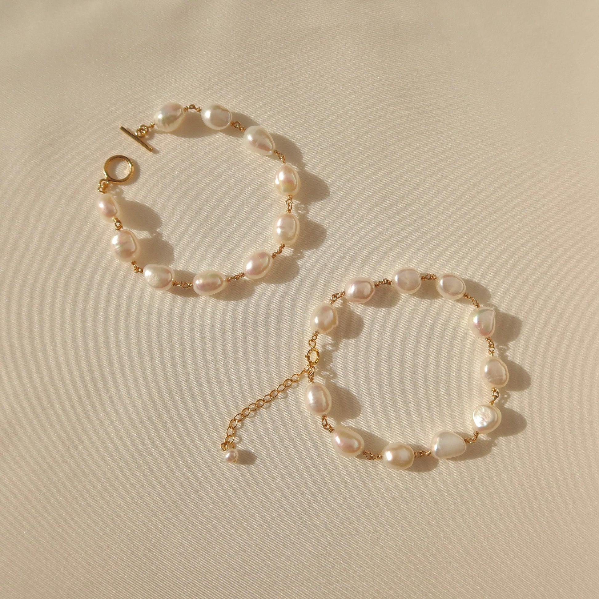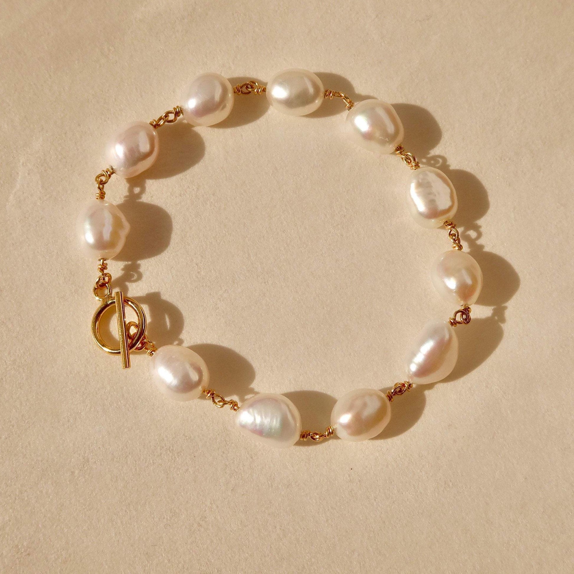 This classic baroque pearl bracelet is handcrafted with freshwater baroque pearls and 14k gold filled materials. Each of our hand-picked baroque pearls is unique with a touch of vintage. This bracelet is available in both toggle and spring clasp. The gold filled components will last for many years to come!