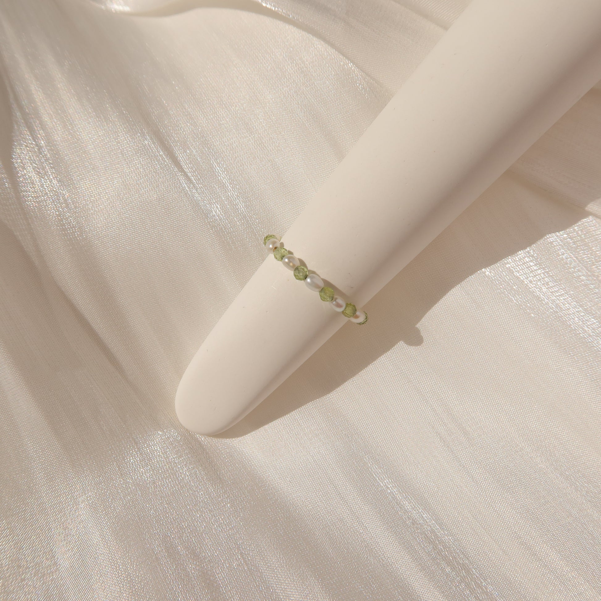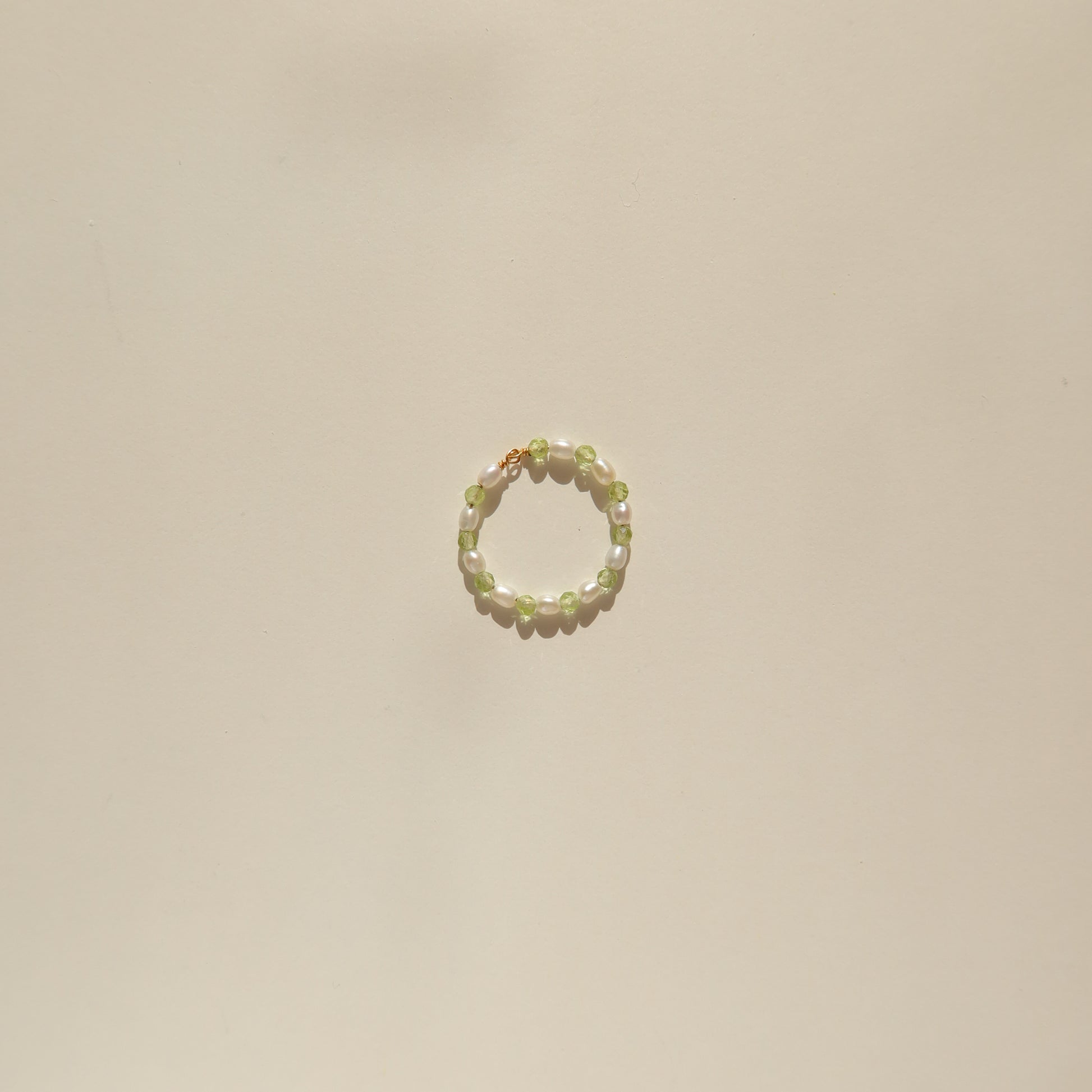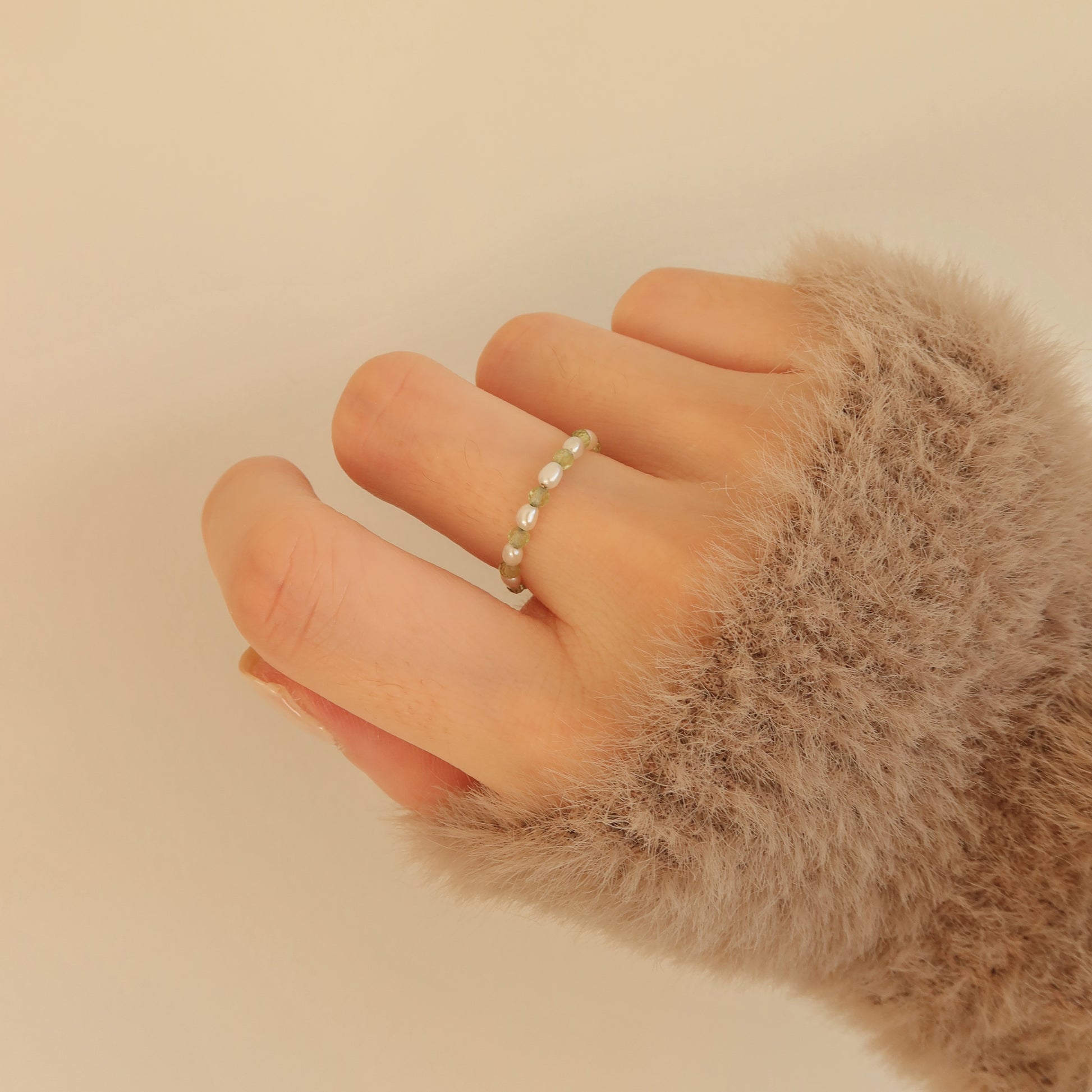 Wear colorful gemstones this fall season! This ring is handcrafted with tiny pearls and peridot crystals. Peridot is a stone for protection against difficulties and negativity. Add some color to your ring stack with it this fall.