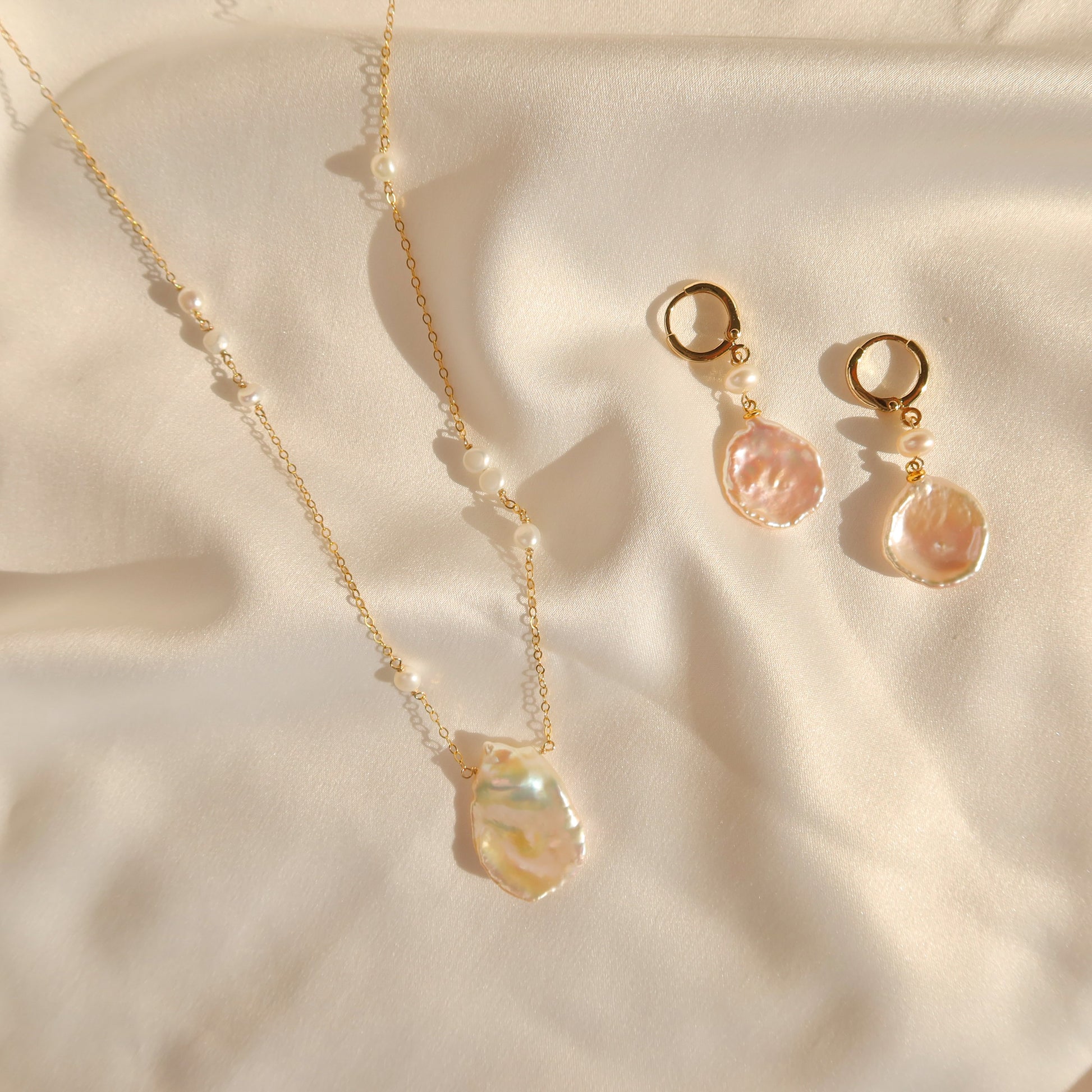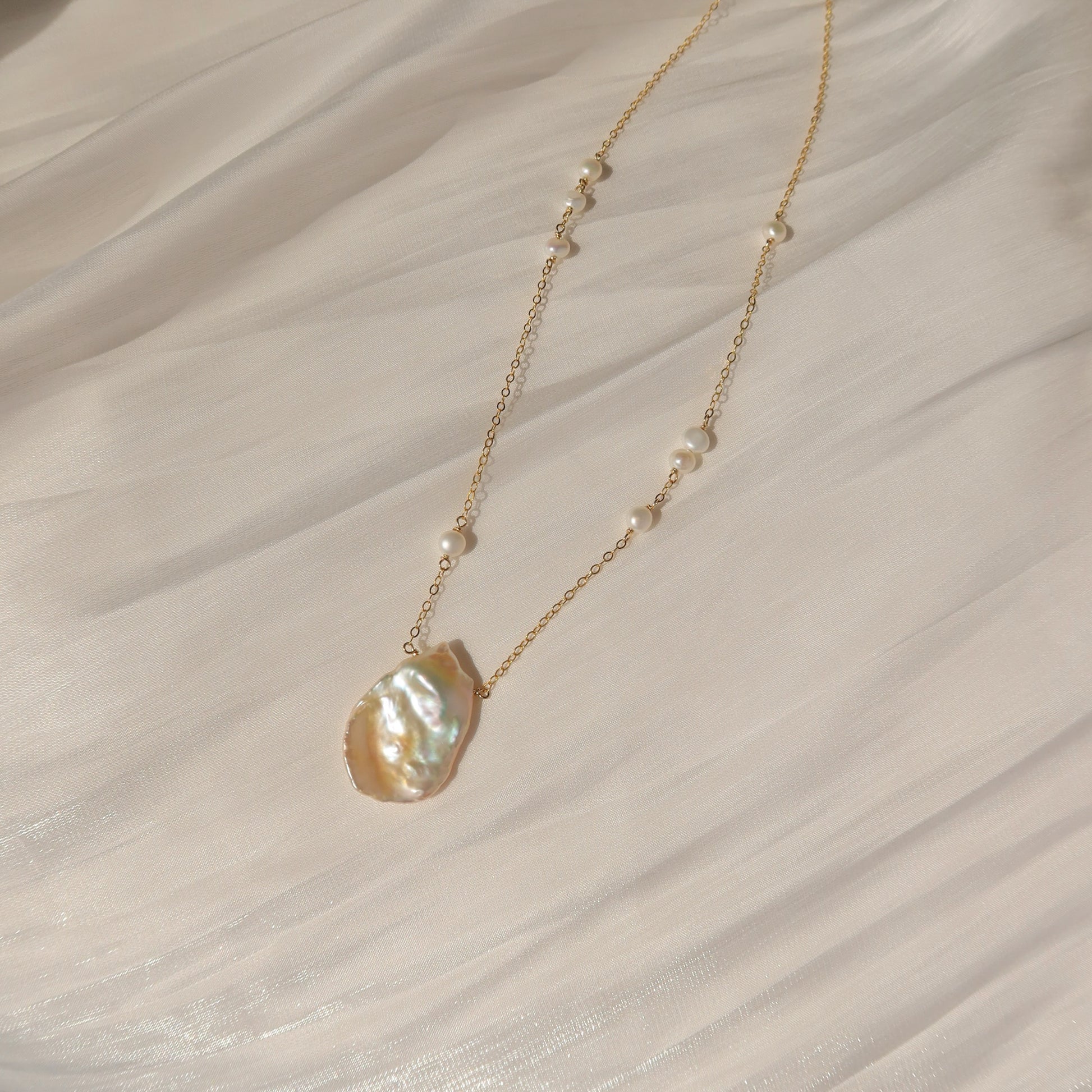Your search for the perfect summer necklace ends here. Featuring a petal pearl pendant decorated with mini baroque pearls. She's feminine and delicate, will for sure add cuteness to your outfit.