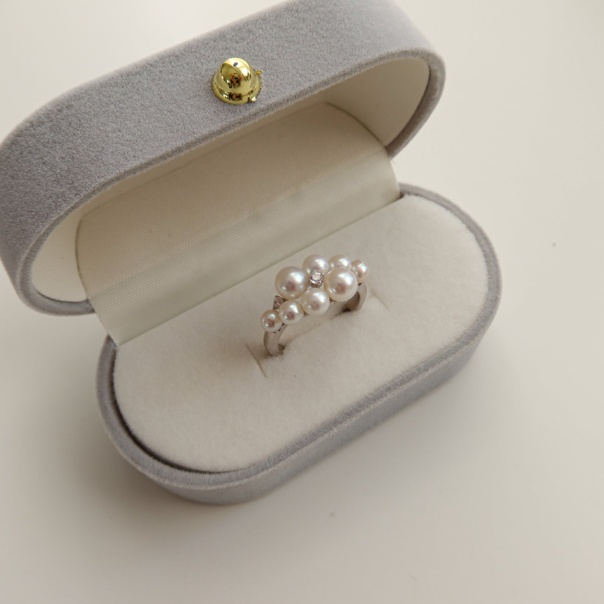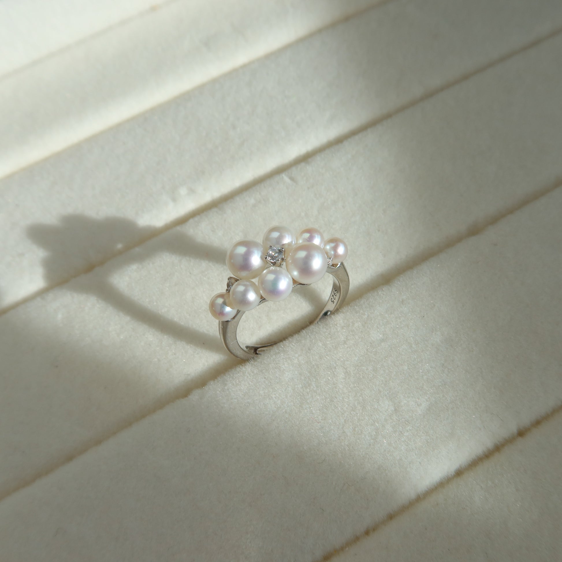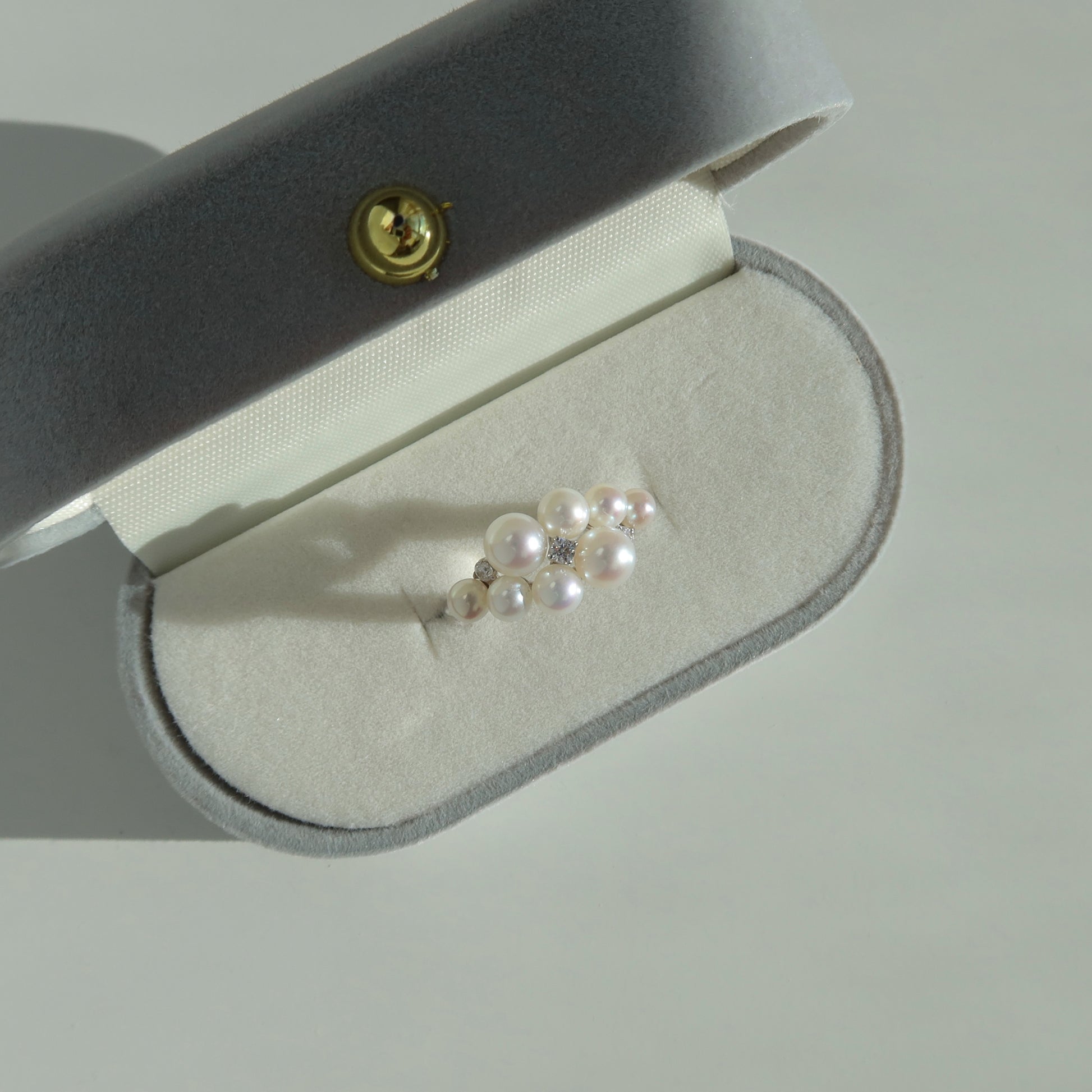 This Rippled Pearl Ring is a stunning piece designed with gradually sized pearls sitting opposite way adorned with CZ stones. Each pearl is perfectly round and flawless, the ring creates a flowing, rippled effect that adds a unique and modern twist to timeless pearl jewelry.