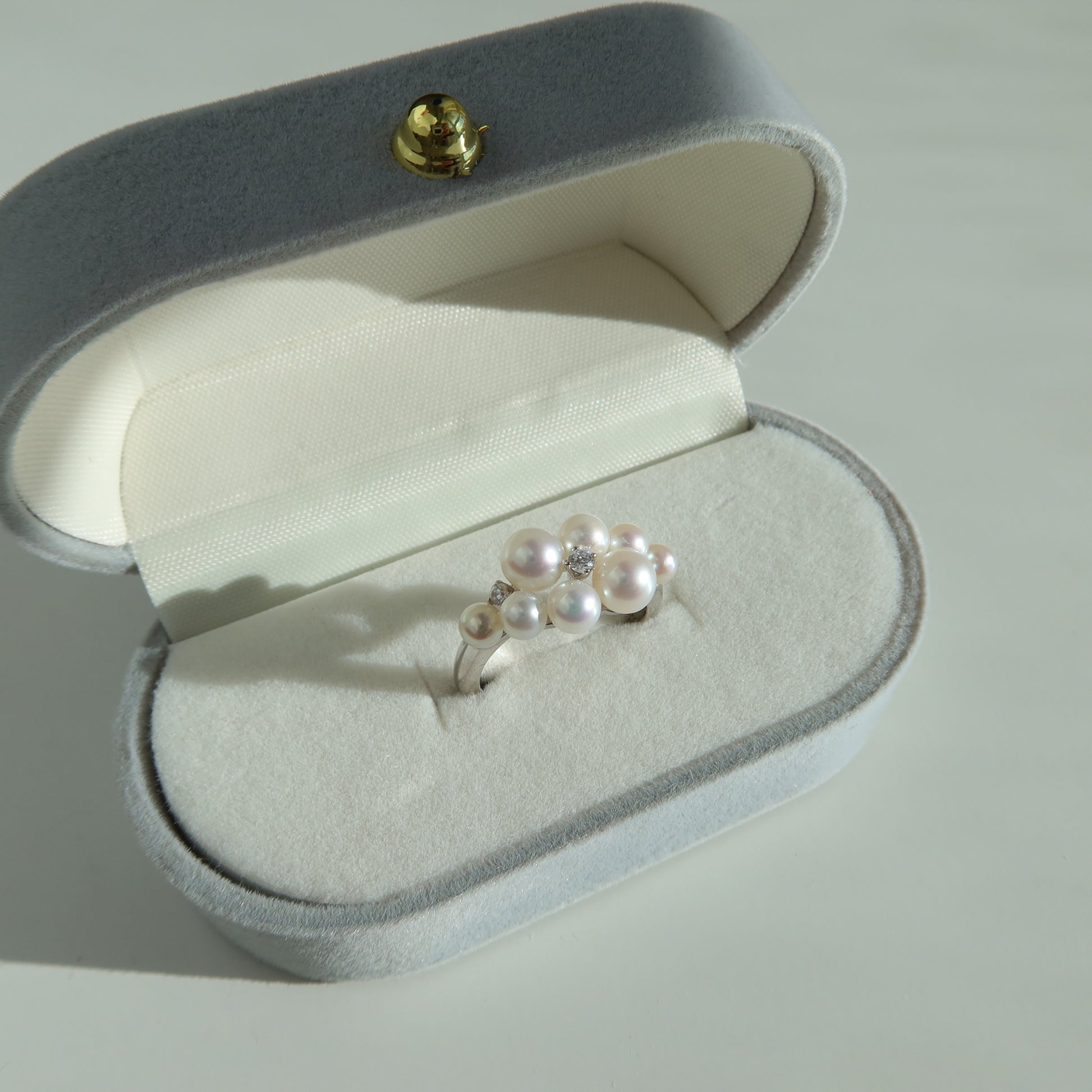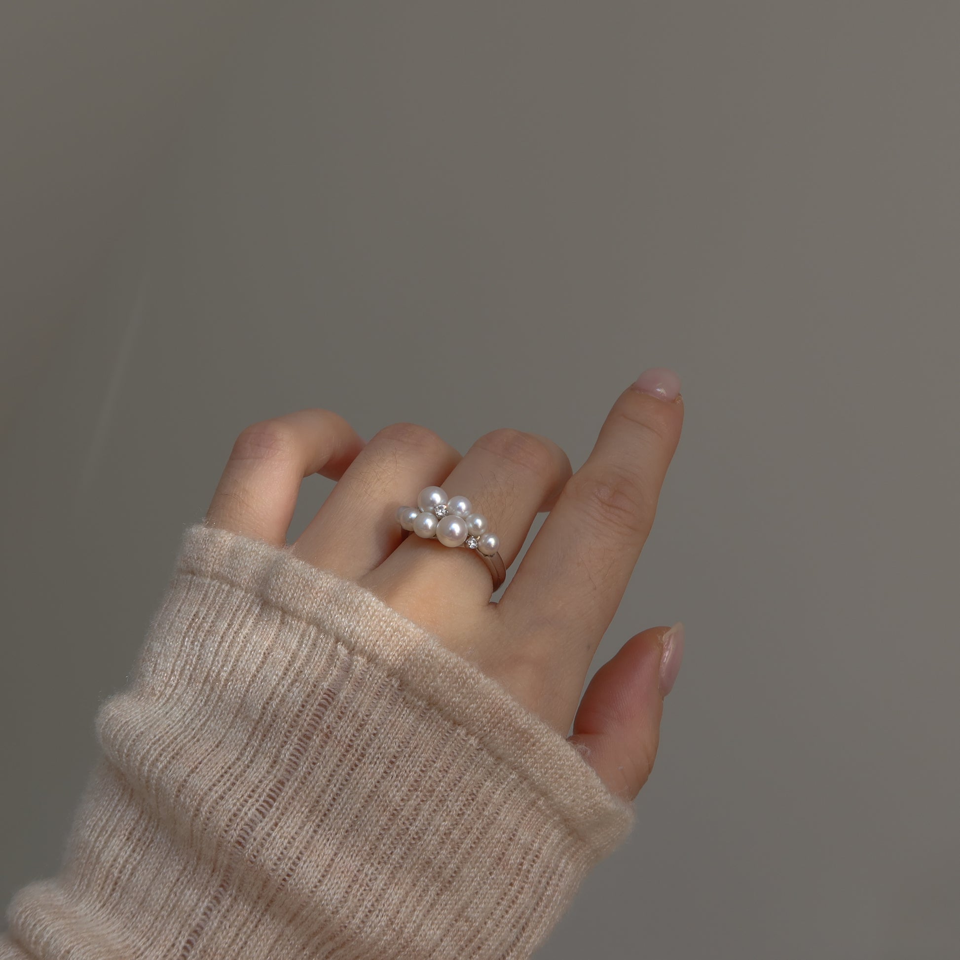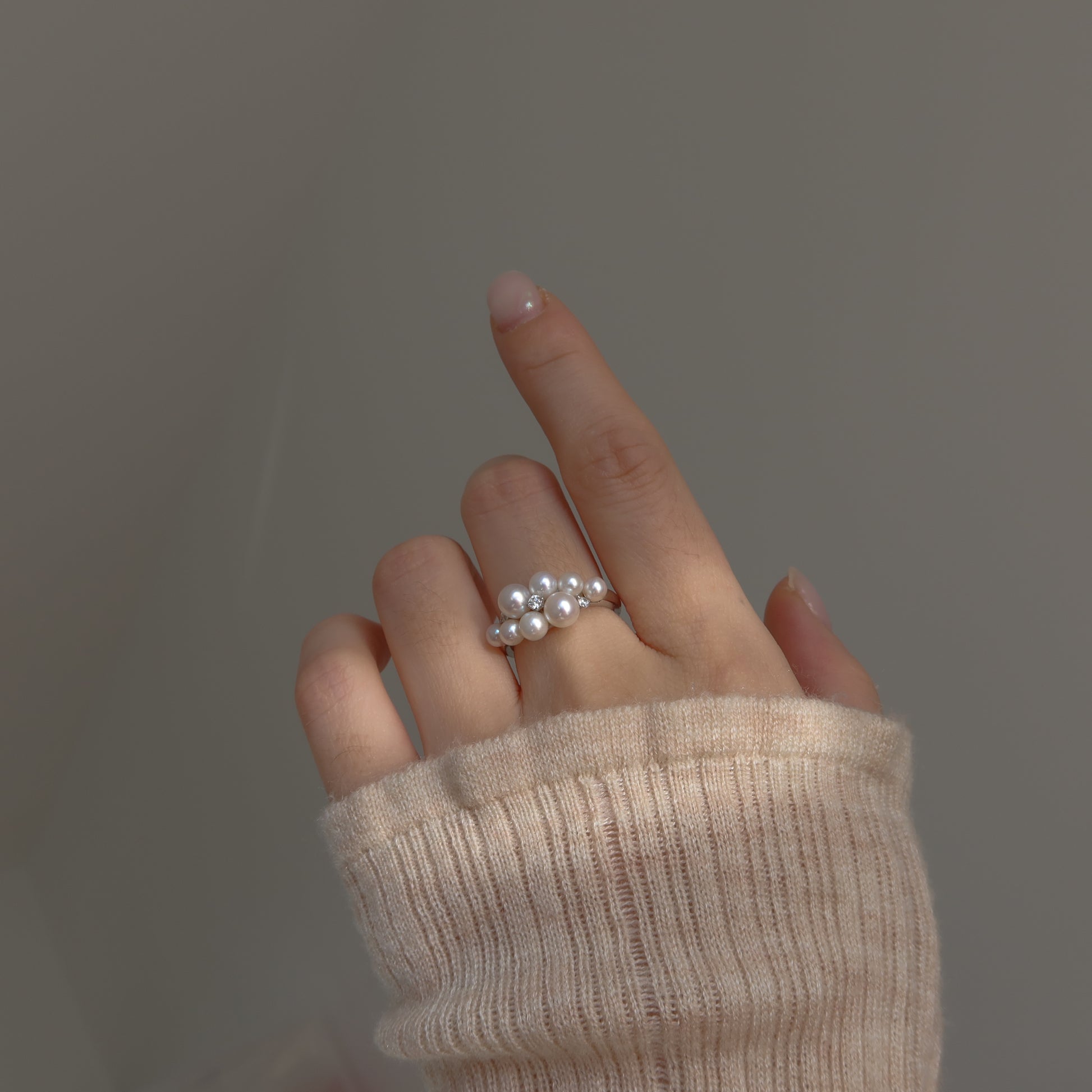 This Rippled Pearl Ring is a stunning piece designed with gradually sized pearls sitting opposite way adorned with CZ stones. Each pearl is perfectly round and flawless, the ring creates a flowing, rippled effect that adds a unique and modern twist to timeless pearl jewelry.