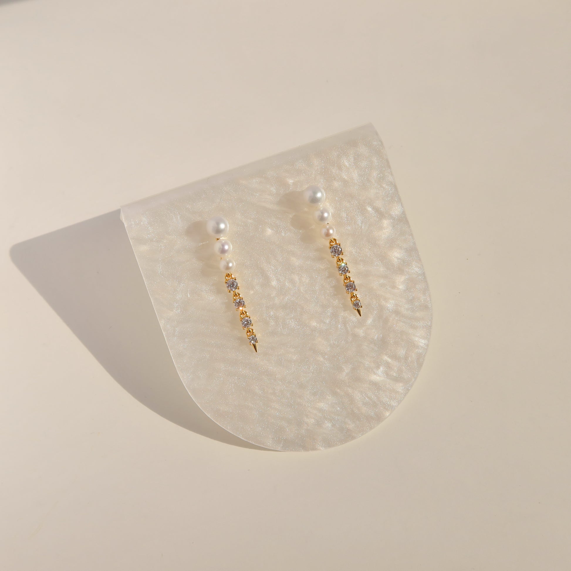 Crafted with perfect round pearls and diamond drips, the Cordelia Pearl Earrings add a hint of elegance to any outfit. Whether you're dressing up a simple blouse or completing a more formal evening look, these earrings are sure to shine.
