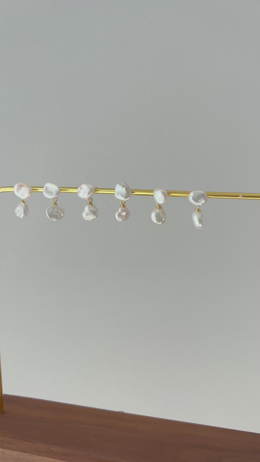 These pearl drop earrings are handmade with organic-shaped Keshi pearls. The blue-silverish luster of these pearls is just like the moonlight. They make a perfect match with our most loved Luna Bracelet.