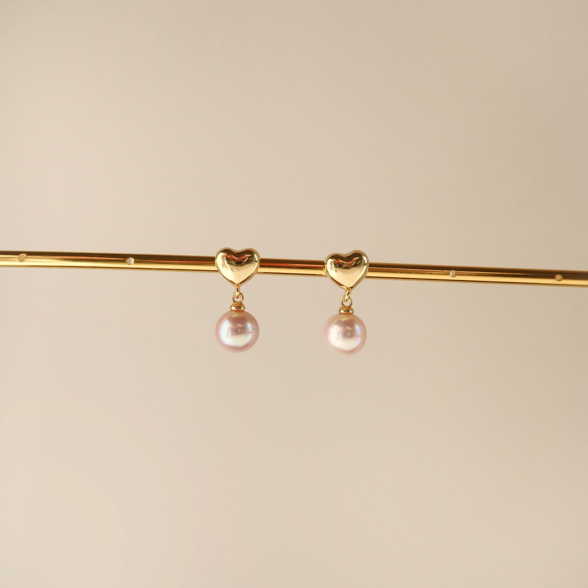 A sweet touch to any ear stack, these earring features puffy hearts and freshwater pink pearls. Pearls in this unique freshwater color are gorgeous and elegant that adds sophistication to any look.
