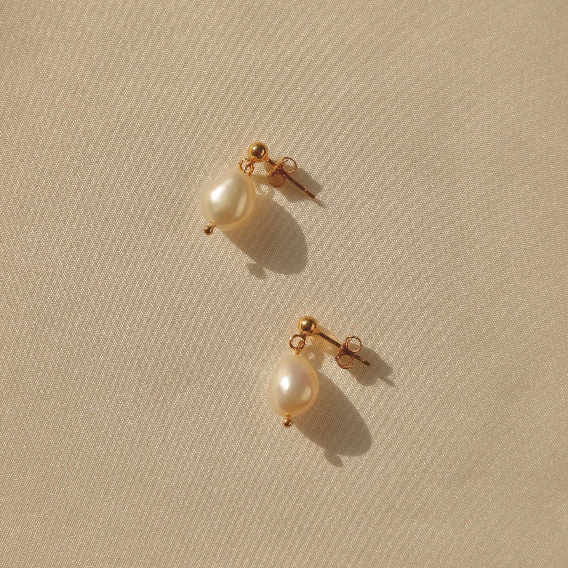 This classic pearl drop earring is handmade with 14k gold filled components and freshwater baroque pearls. Each baroque pearl is unique, just like you. They are designed for everyday looks, perfect for your simple and classic outfits.