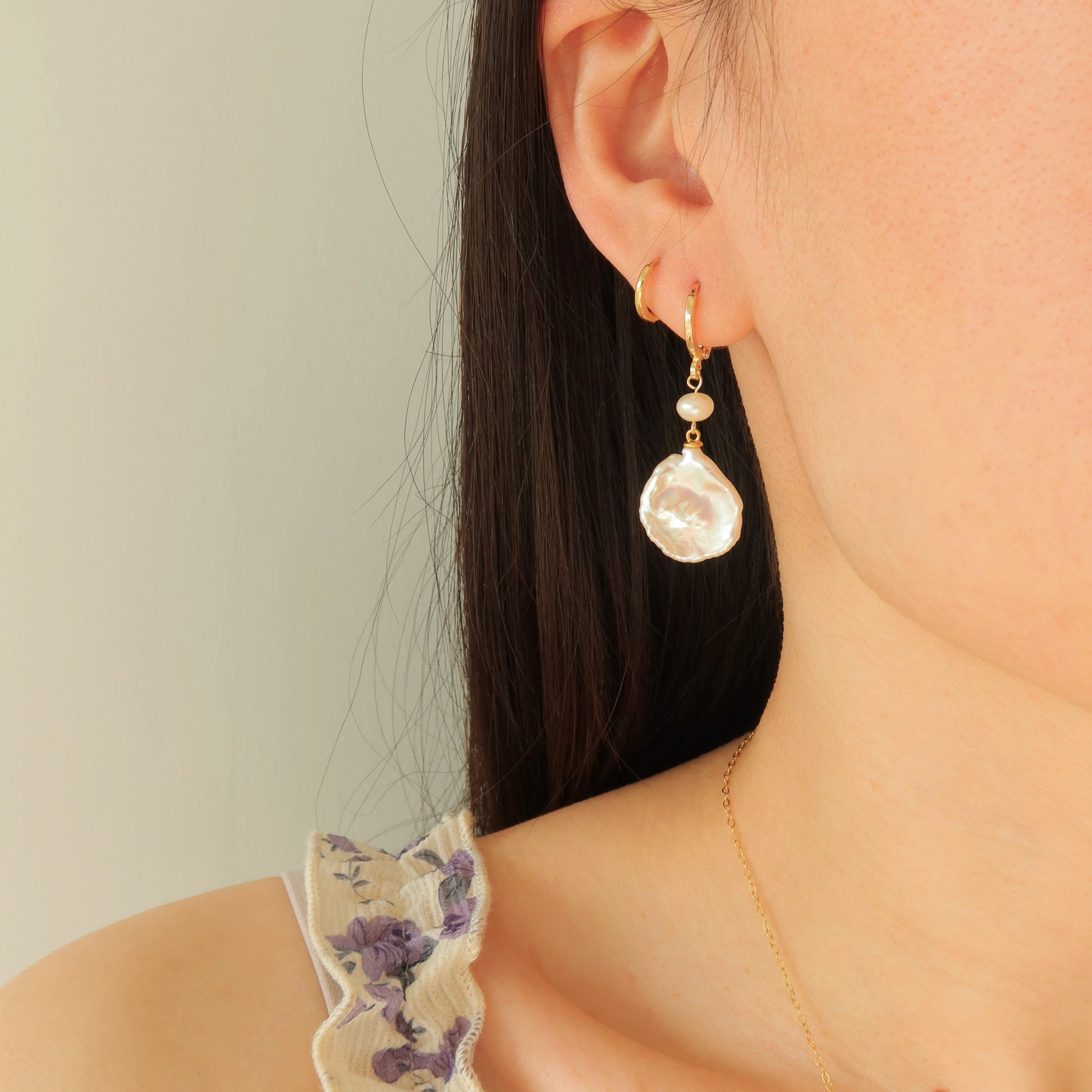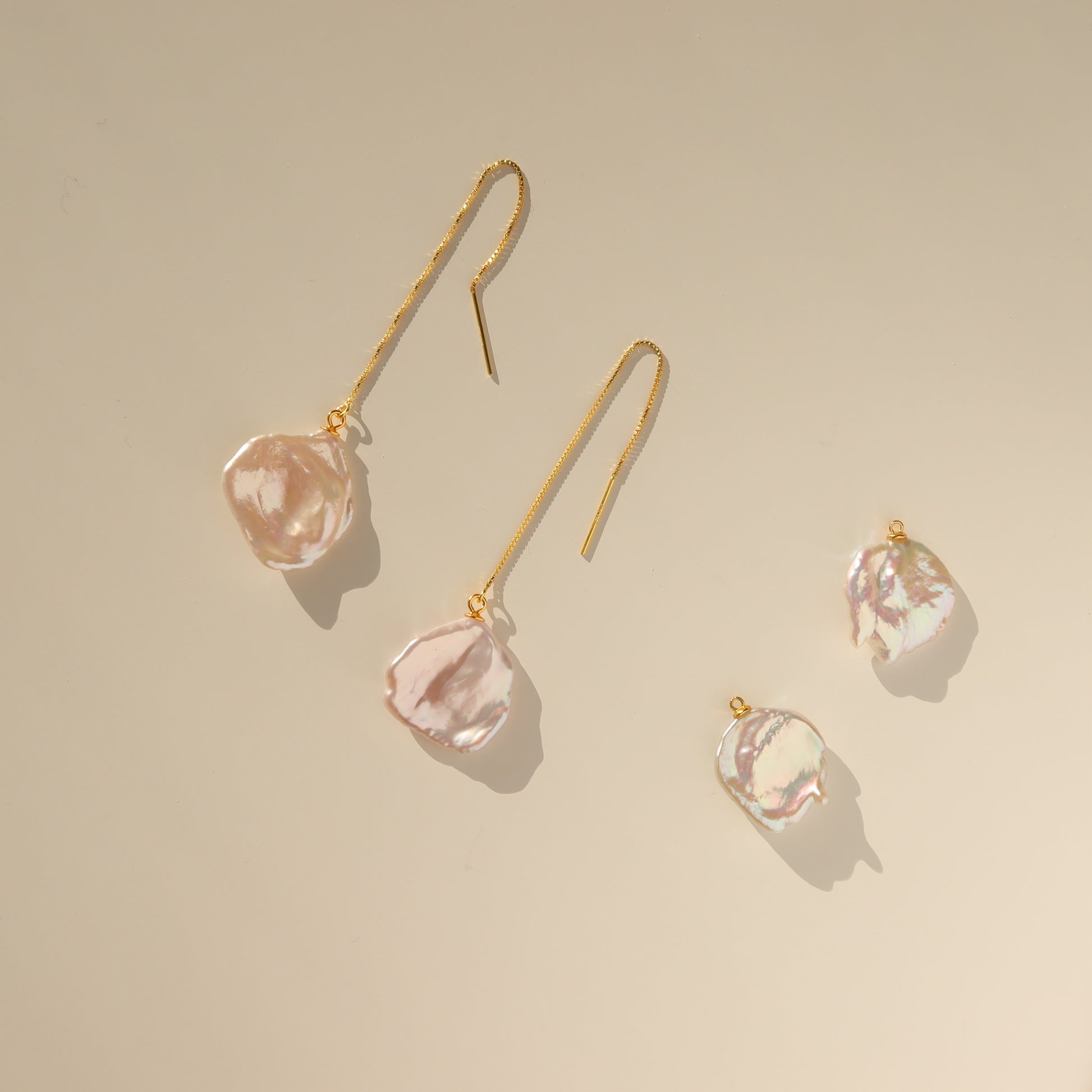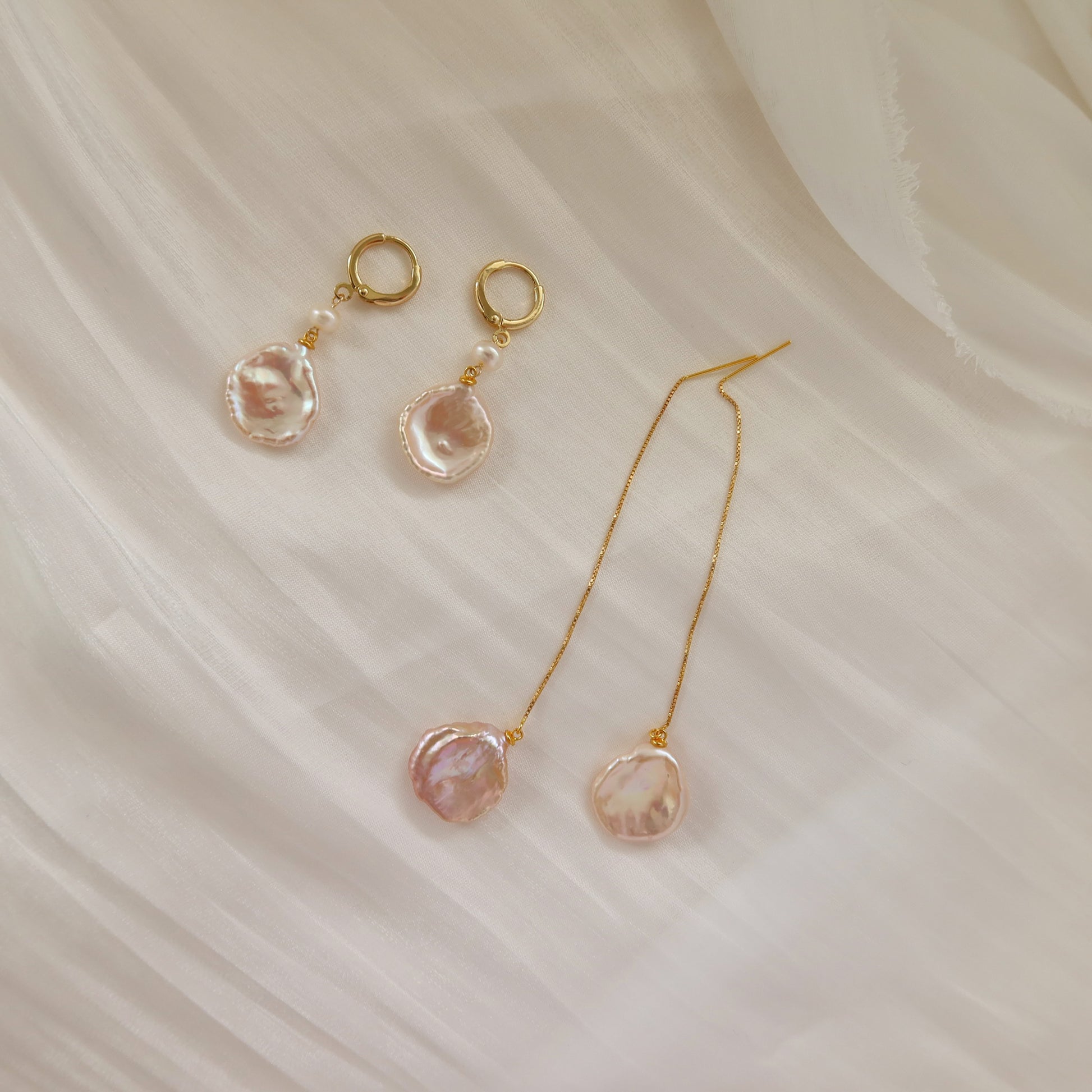 These elegant earrings made with baroque petal pearls. Each of them are unique in shapes and color. We made two designs so you could customize your dream earrings by selecting the pearls and style.
