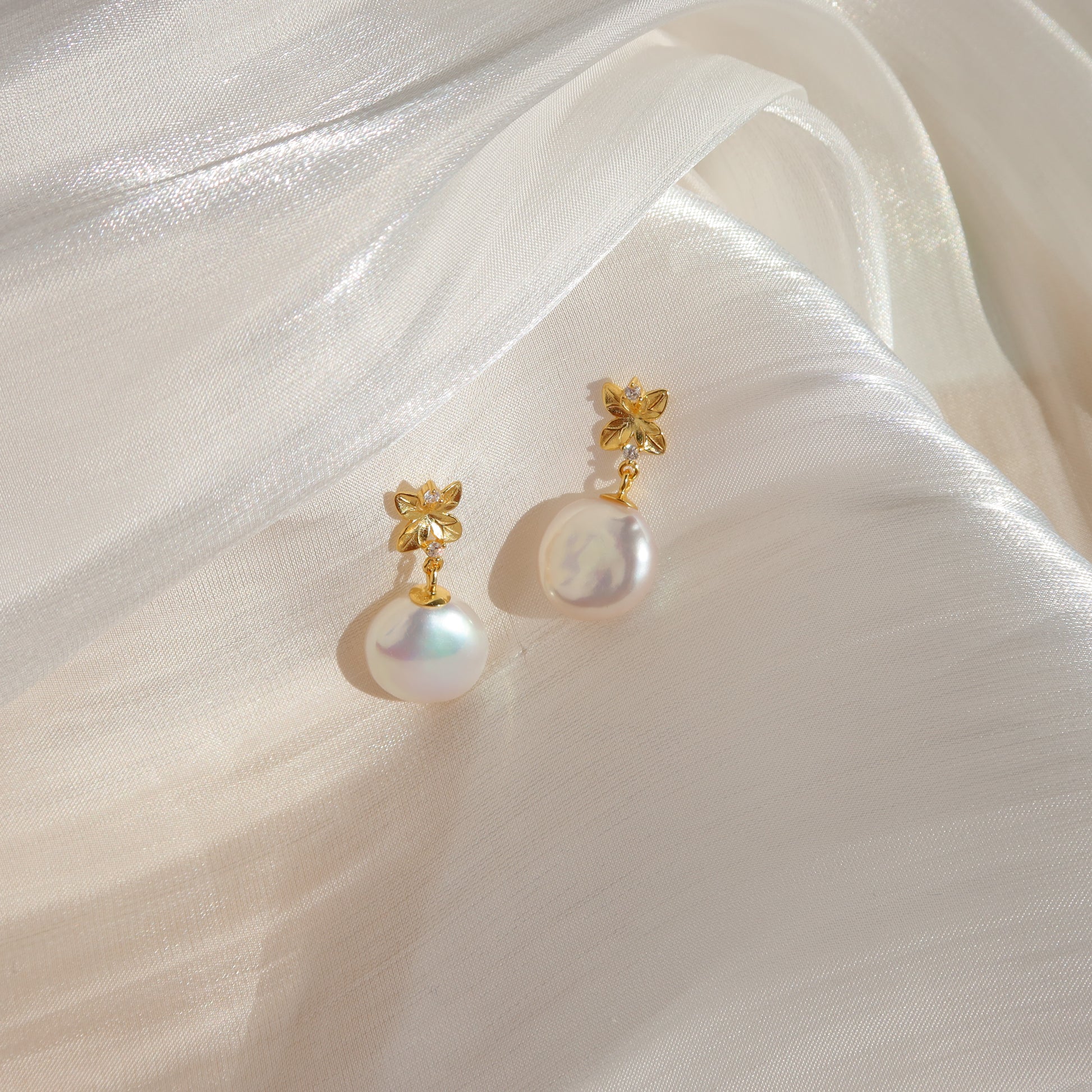 Light up your look with these stunning Shanon pearl earrings. Featuring lustrous button-shaped Baroque pearls and beautiful lilac flowers delicately detailed with CZ stones, these gorgeous earrings will make you feel beautiful and special! An exquisite addition to any collection.