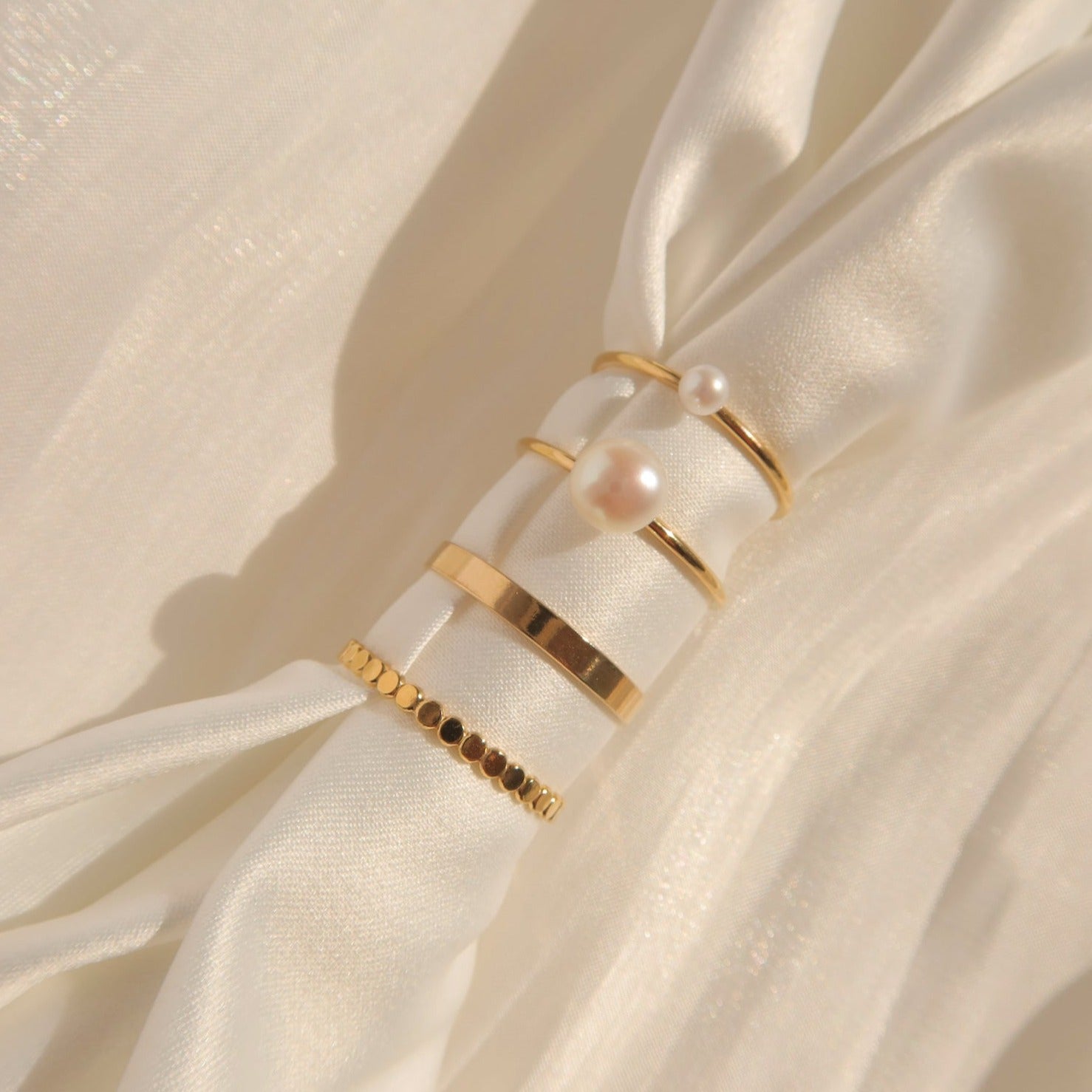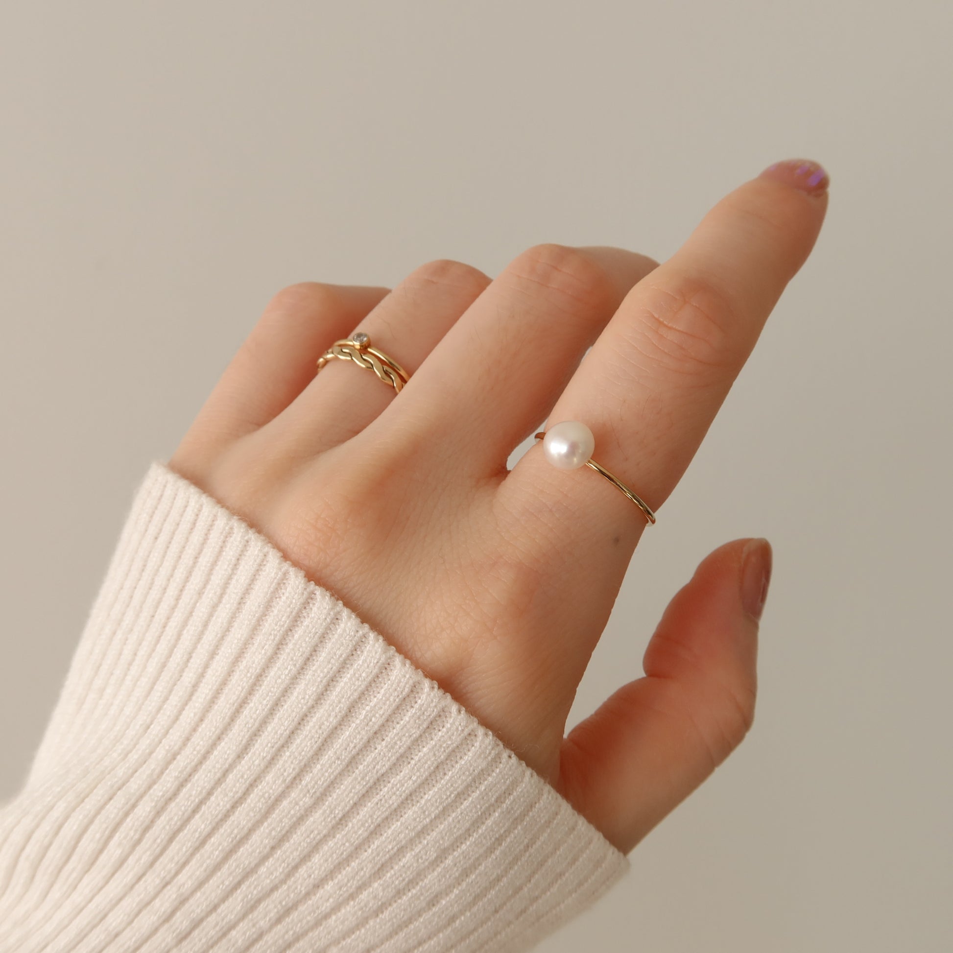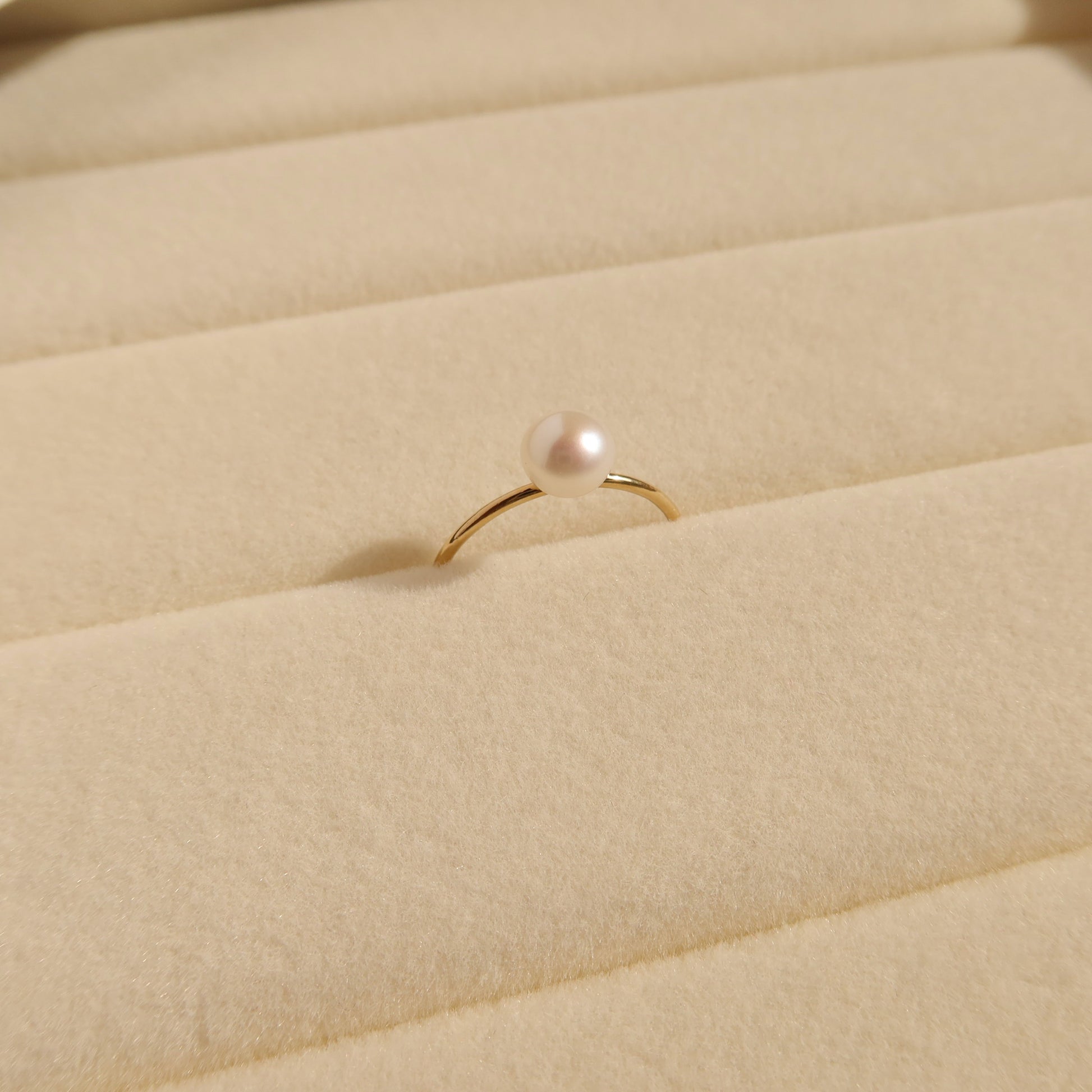 经典珍珠戒指,14K镀金戒圈,镶嵌一颗AAA级淡水珍珠。单独佩戴或与其他戒指叠戴,都美不胜收。