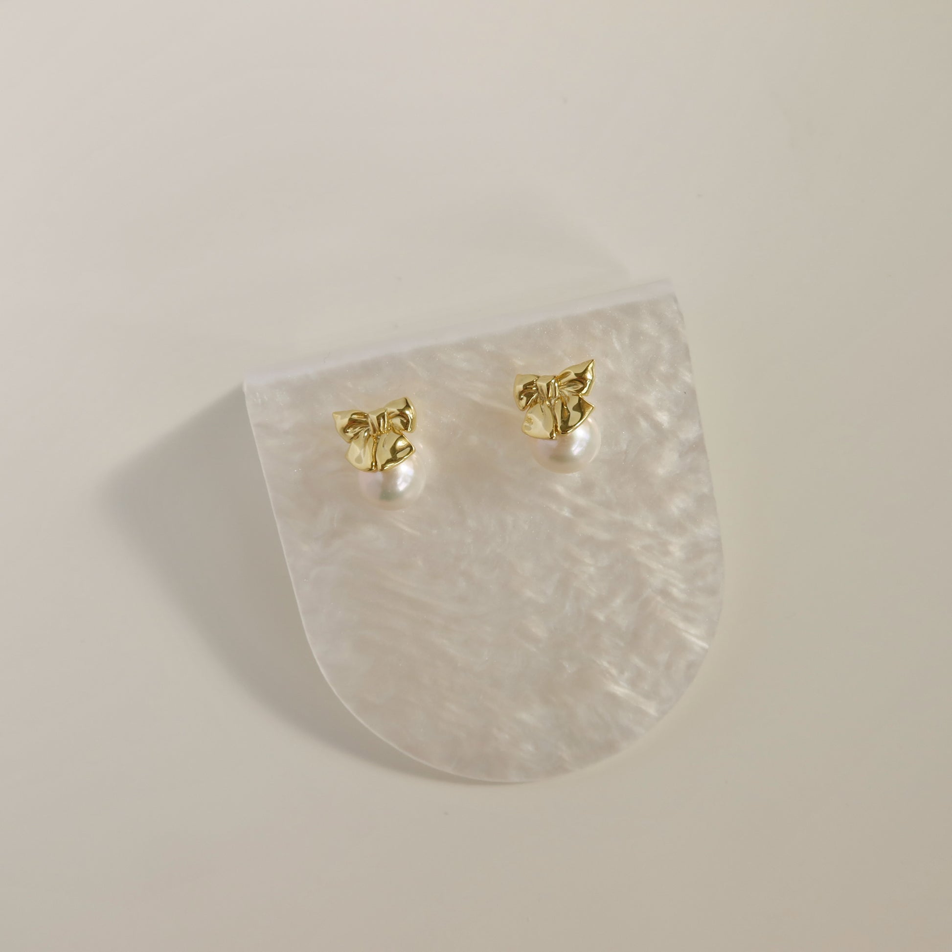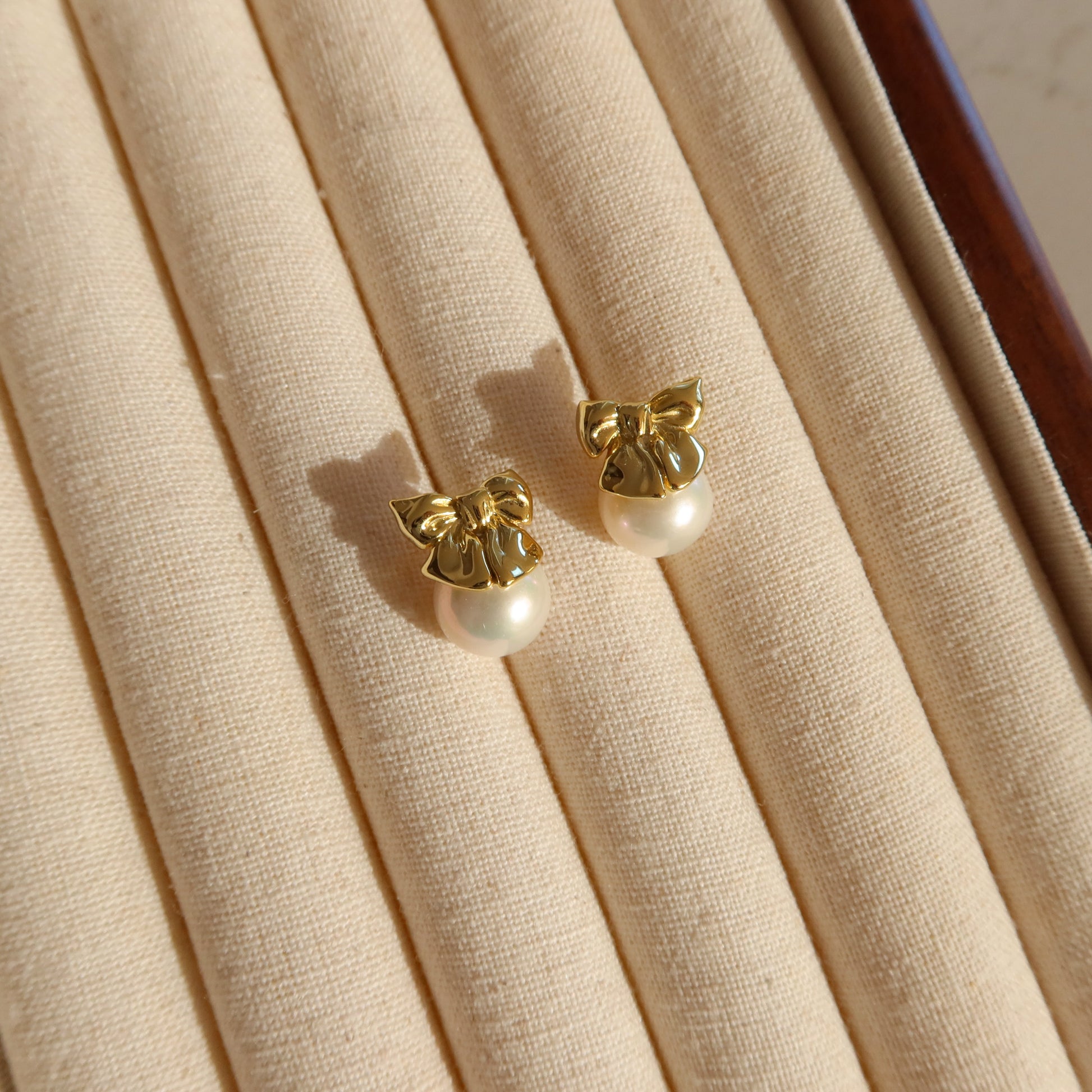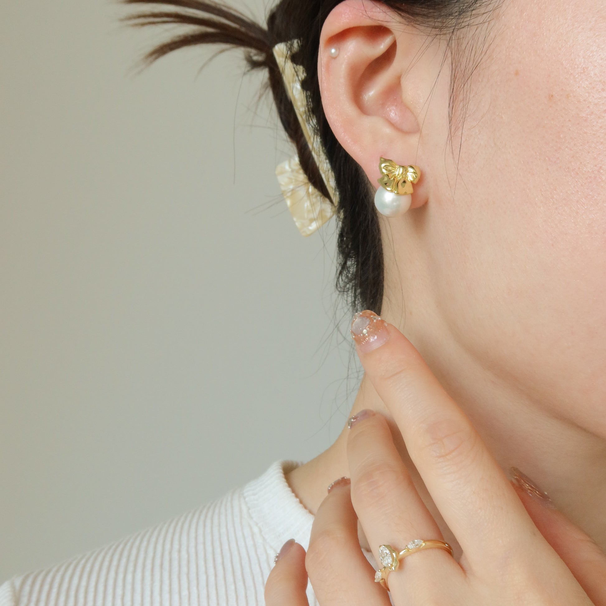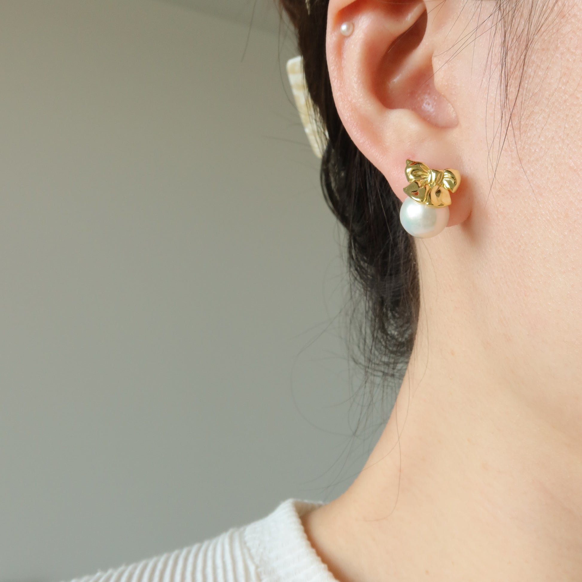 认识一下 Alexis,这对耳环非常适合那些想要展现大胆个性又不失可爱的人。这对耳钉饰有时尚的金色金属蝴蝶结,镶嵌在一颗颗硕大的淡水珍珠上。可爱与时尚的完美结合!