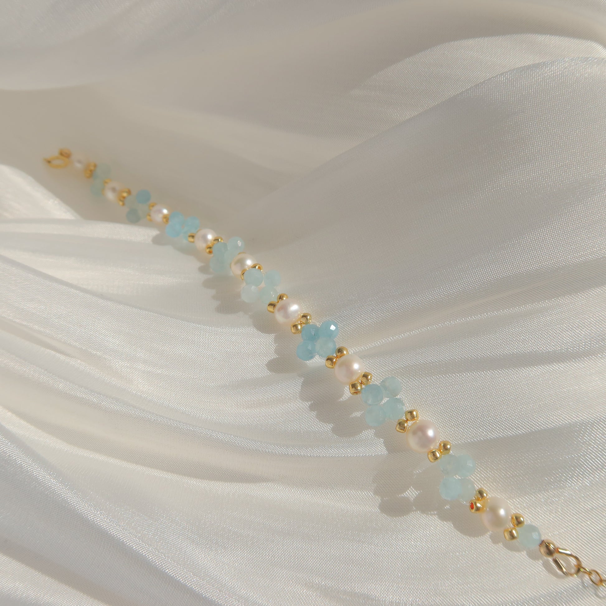 这款迷人的海蓝宝石珍珠手链,捕捉夏日微风。它采用各种色调的海蓝宝石和天然珍珠手工打造,是提升您整体造型的完美配饰。无论您身在何处,都能享受这款手链的美丽与优雅。