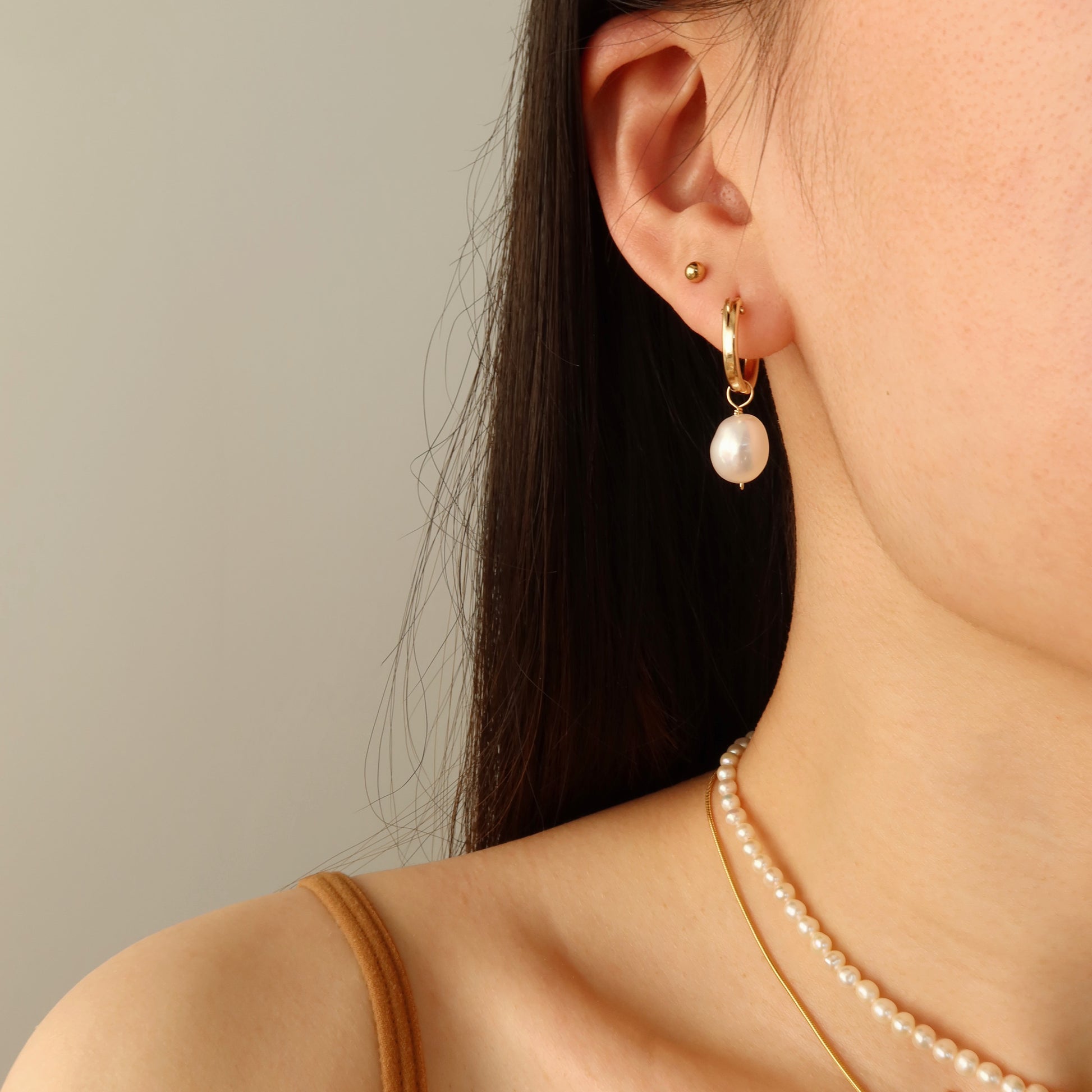 一款巴洛克淡水珍珠吊坠。天然珍珠独一无二。它可拆卸,并可与我们任何一款耳环互换。 打造您自己的耳环系列。