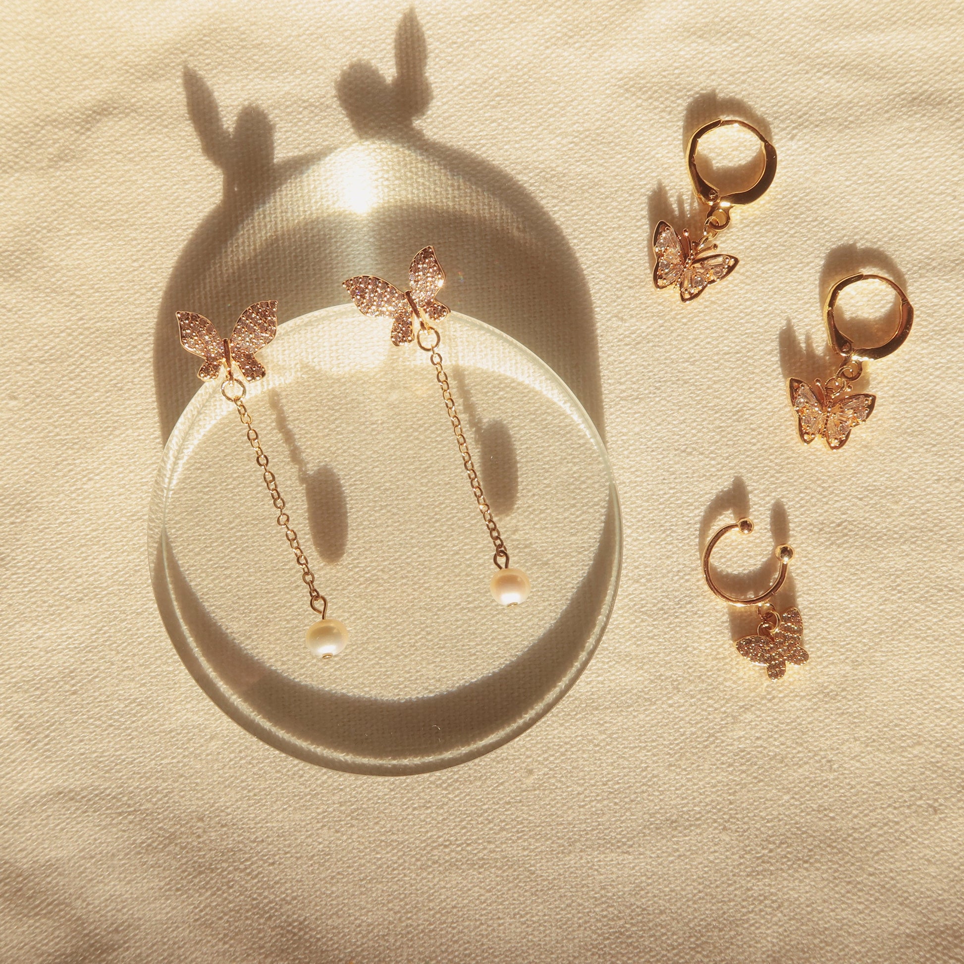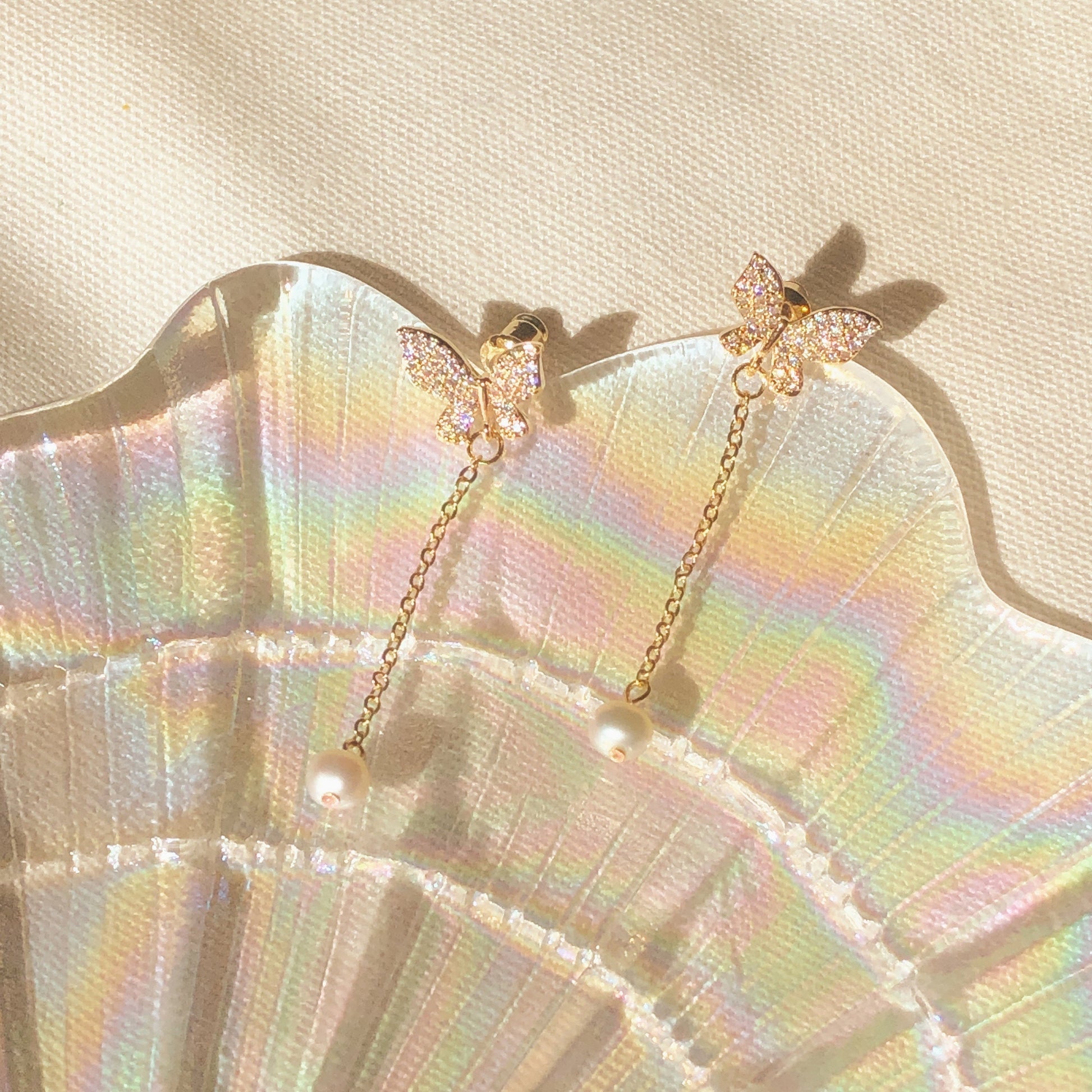 蝴蝶和珍珠吊坠耳环