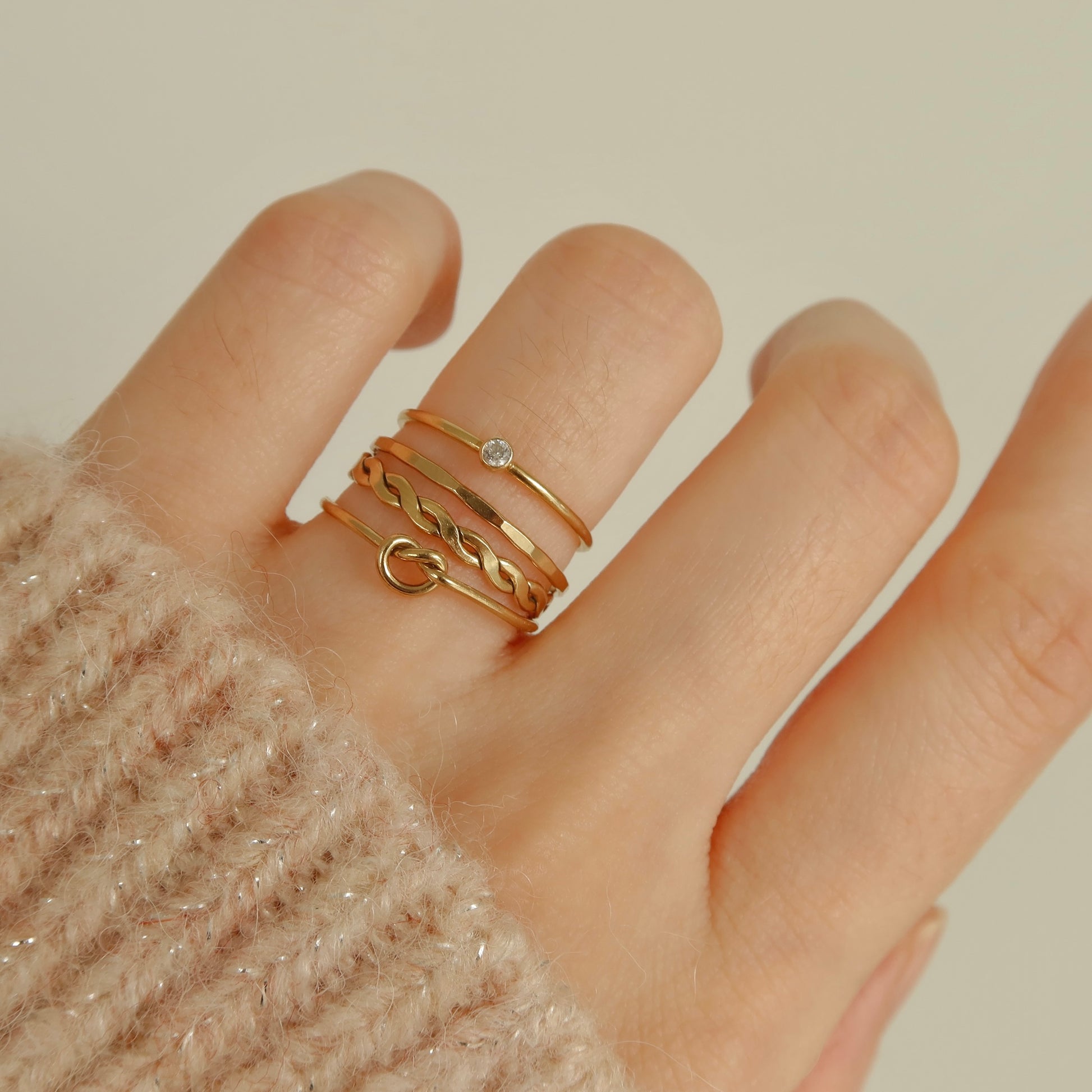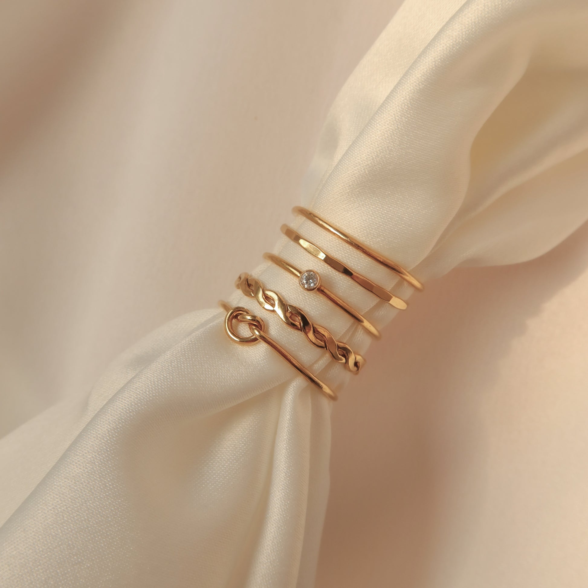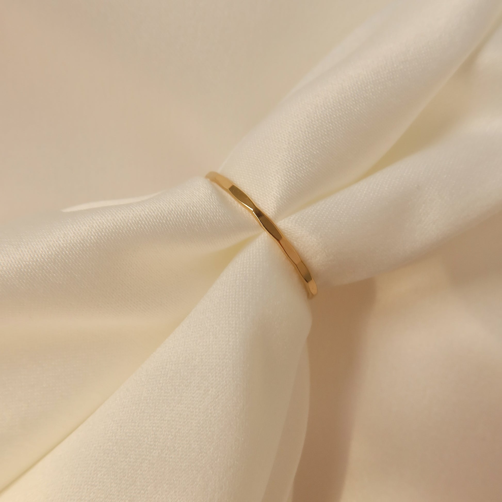 Cherie 是一款经典戒指,但因其锤纹饰面而略带闪耀。她的美丽低调而永恒。为您的戒指收藏增添一枚闪亮单品,提升您的戒指叠戴体验。14K 镀金材质确保持久闪耀的金光。淋浴时佩戴也安全无虞!但请记住,请远离乳液、香水和肥皂等化学物质。