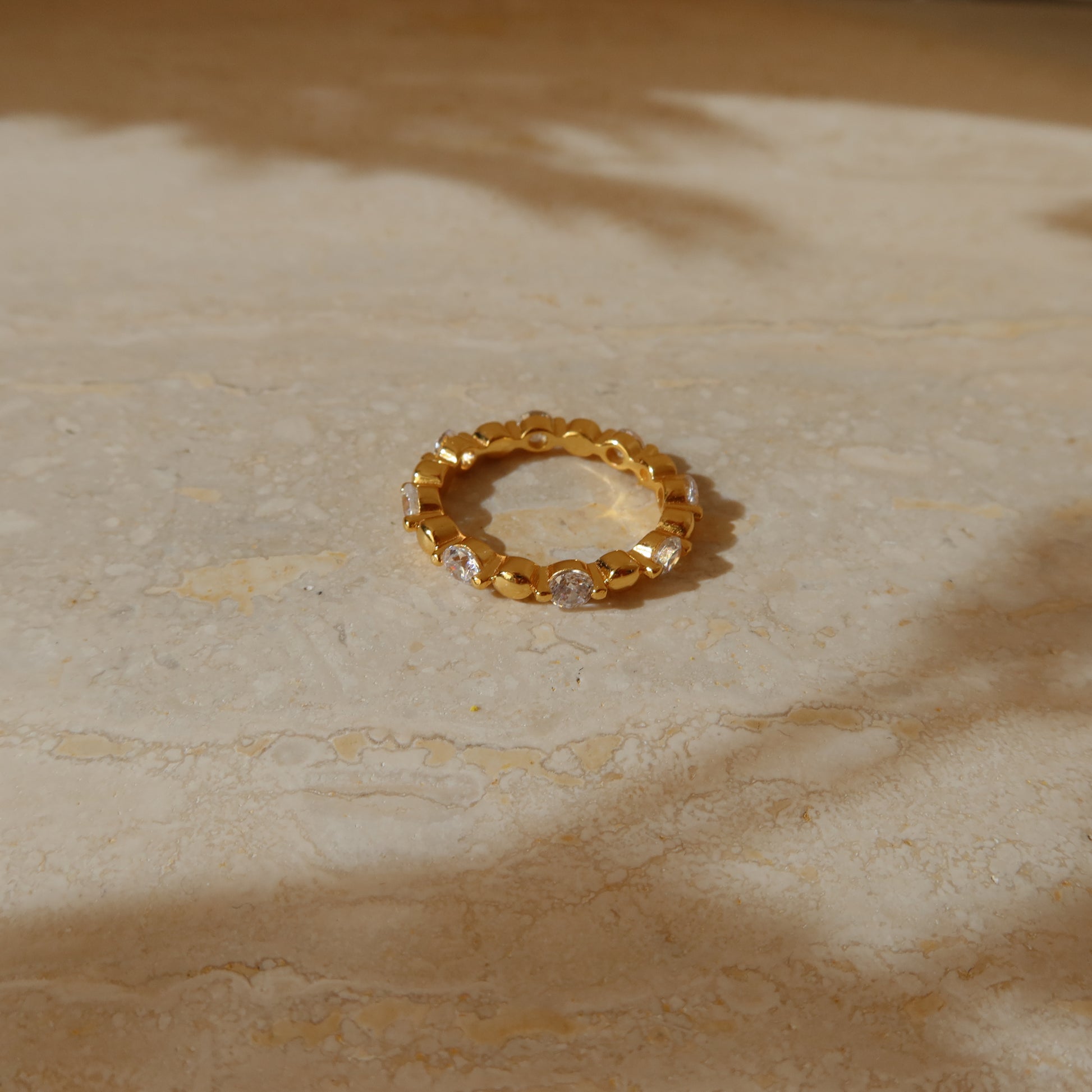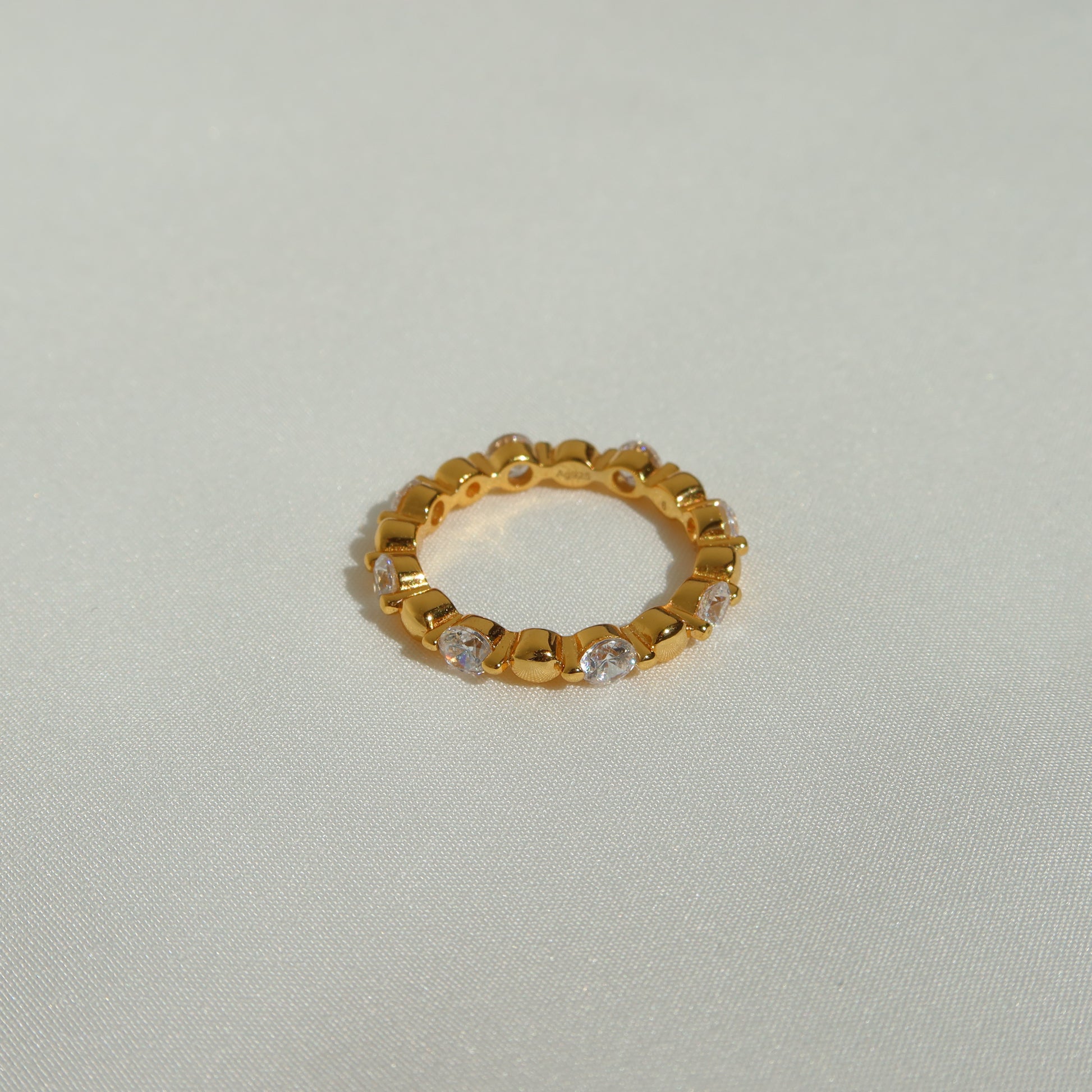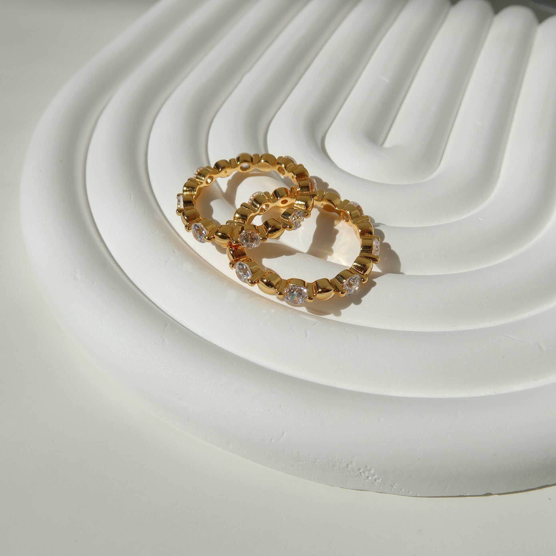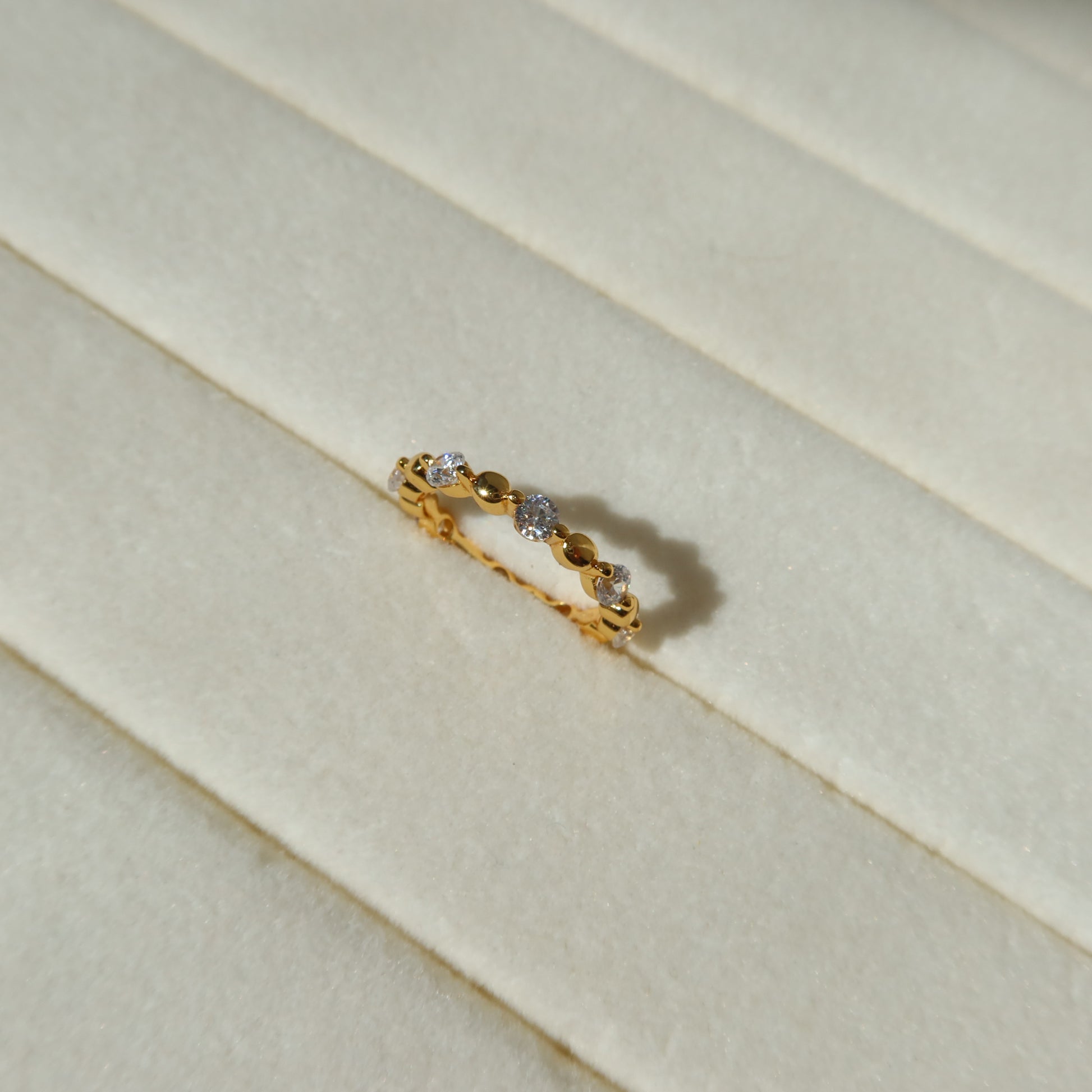 俏皮闪耀,现代演绎。这款戒指的戒圈上镶嵌着璀璨的立方氧化锆石,并点缀着抛光金色泡泡细节,更添质感与魅力。璀璨夺目,个性十足,无论是单独佩戴还是叠戴,都堪称完美。