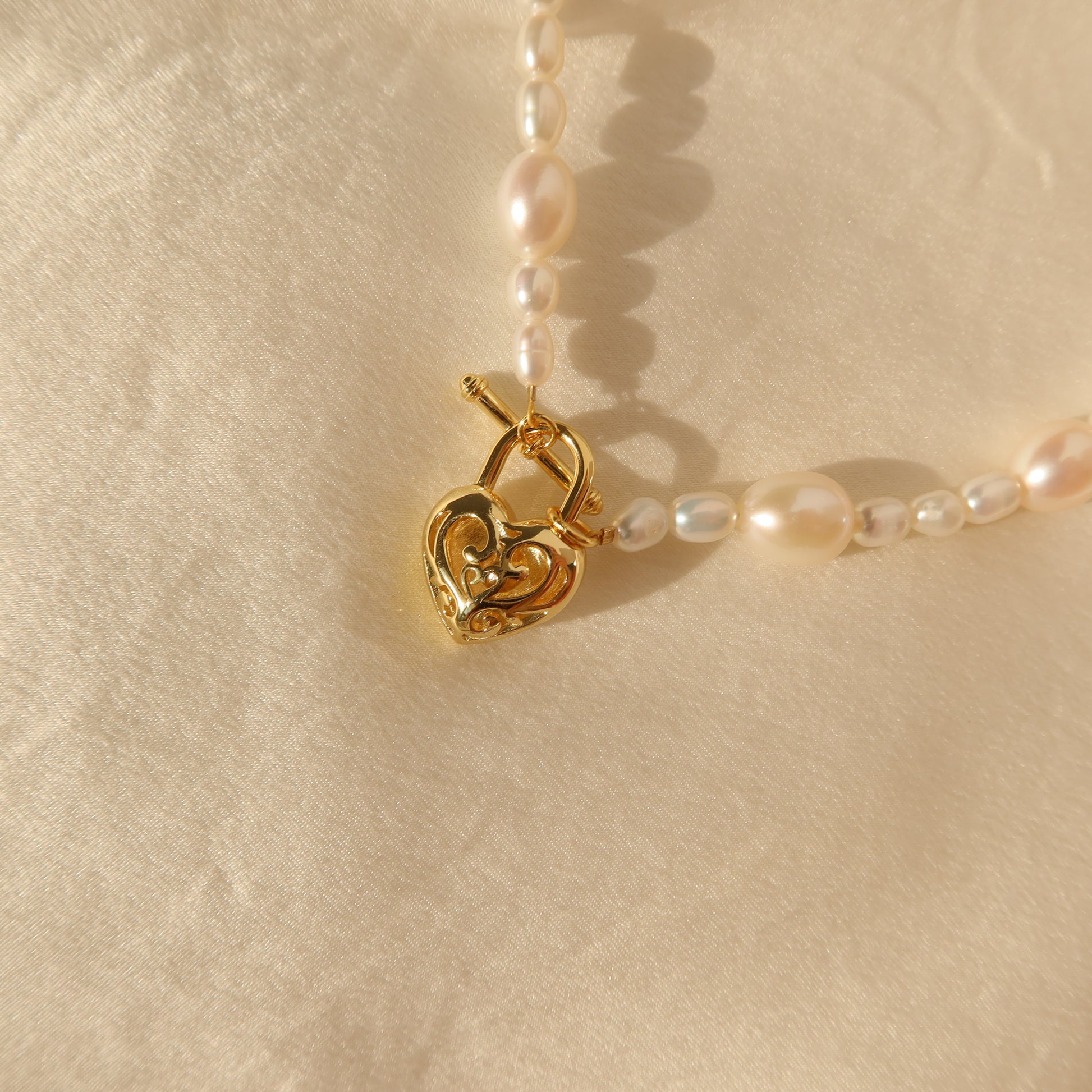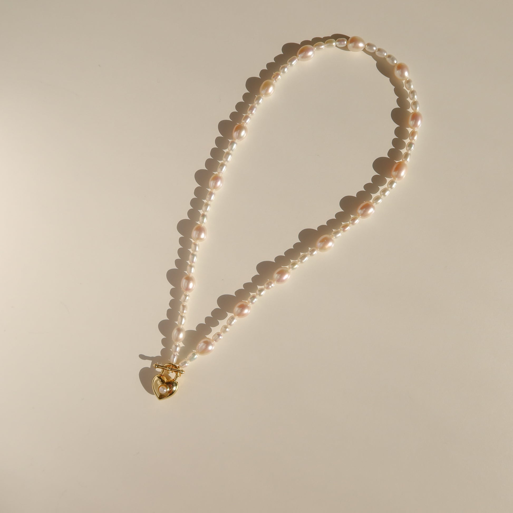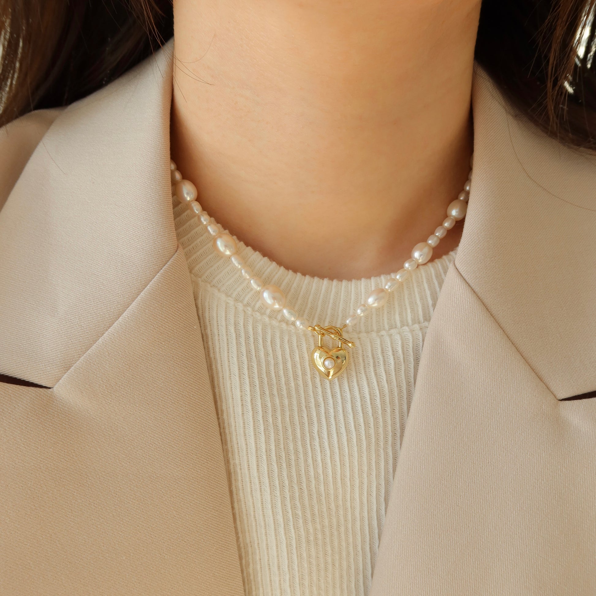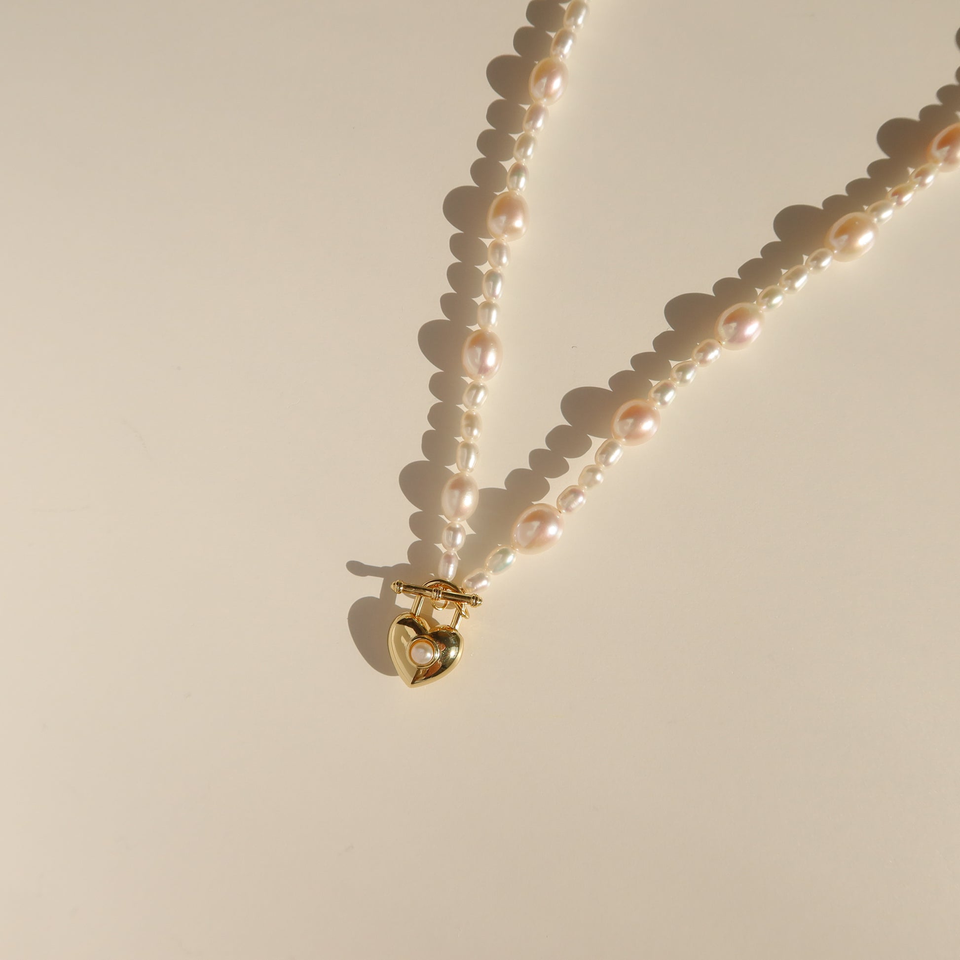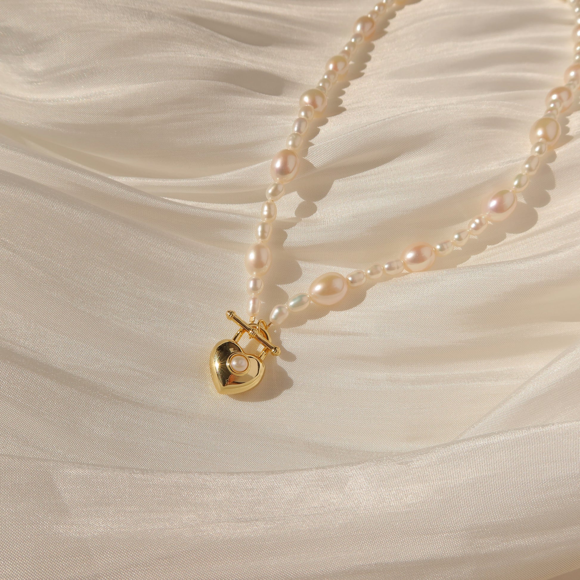 用 Gina Toggle 项链为你的造型增添浪漫气息。这款项链由光泽的淡水珍珠和一颗缀有小珍珠的心形纽扣制成。她代表着女性主义,又不失复古气息。