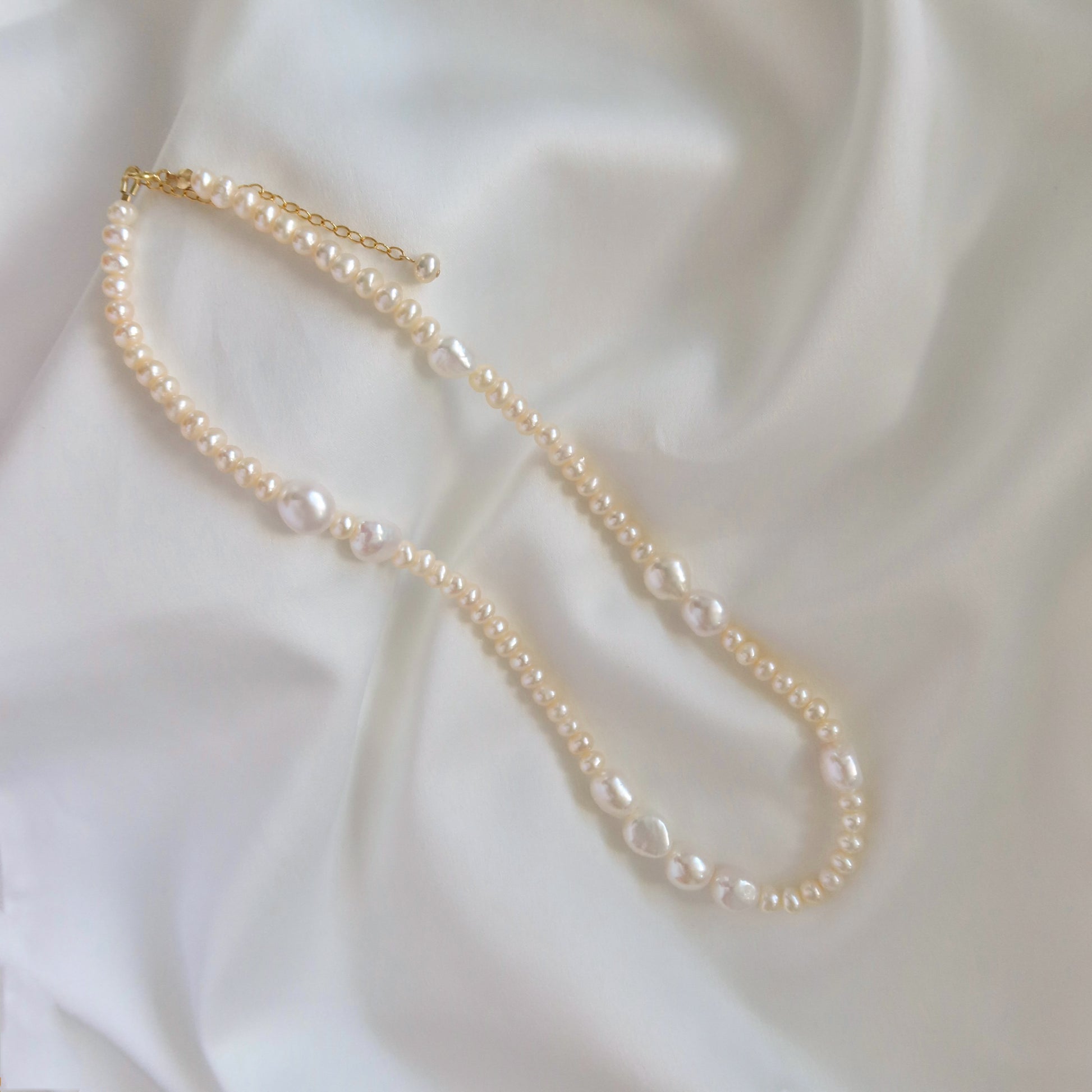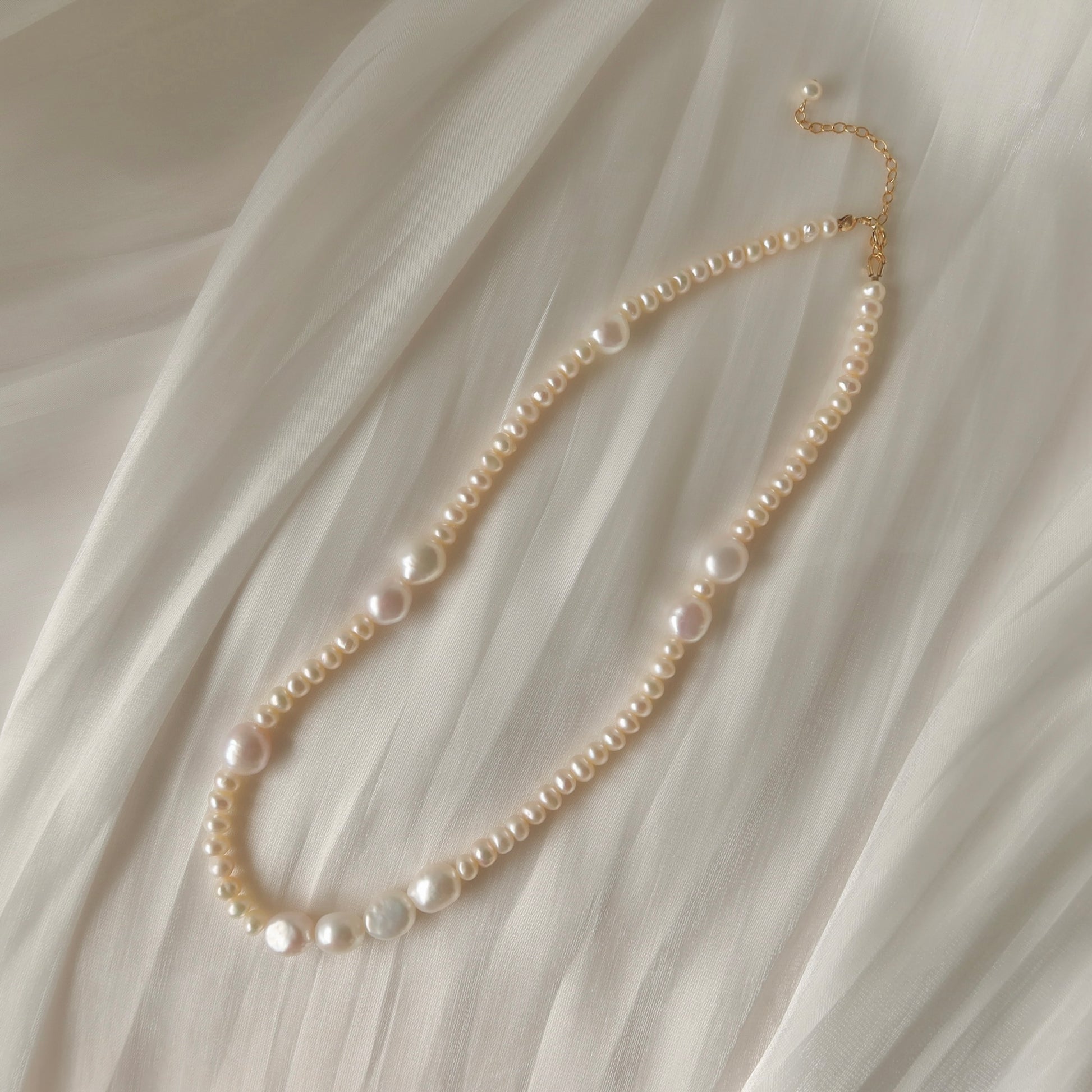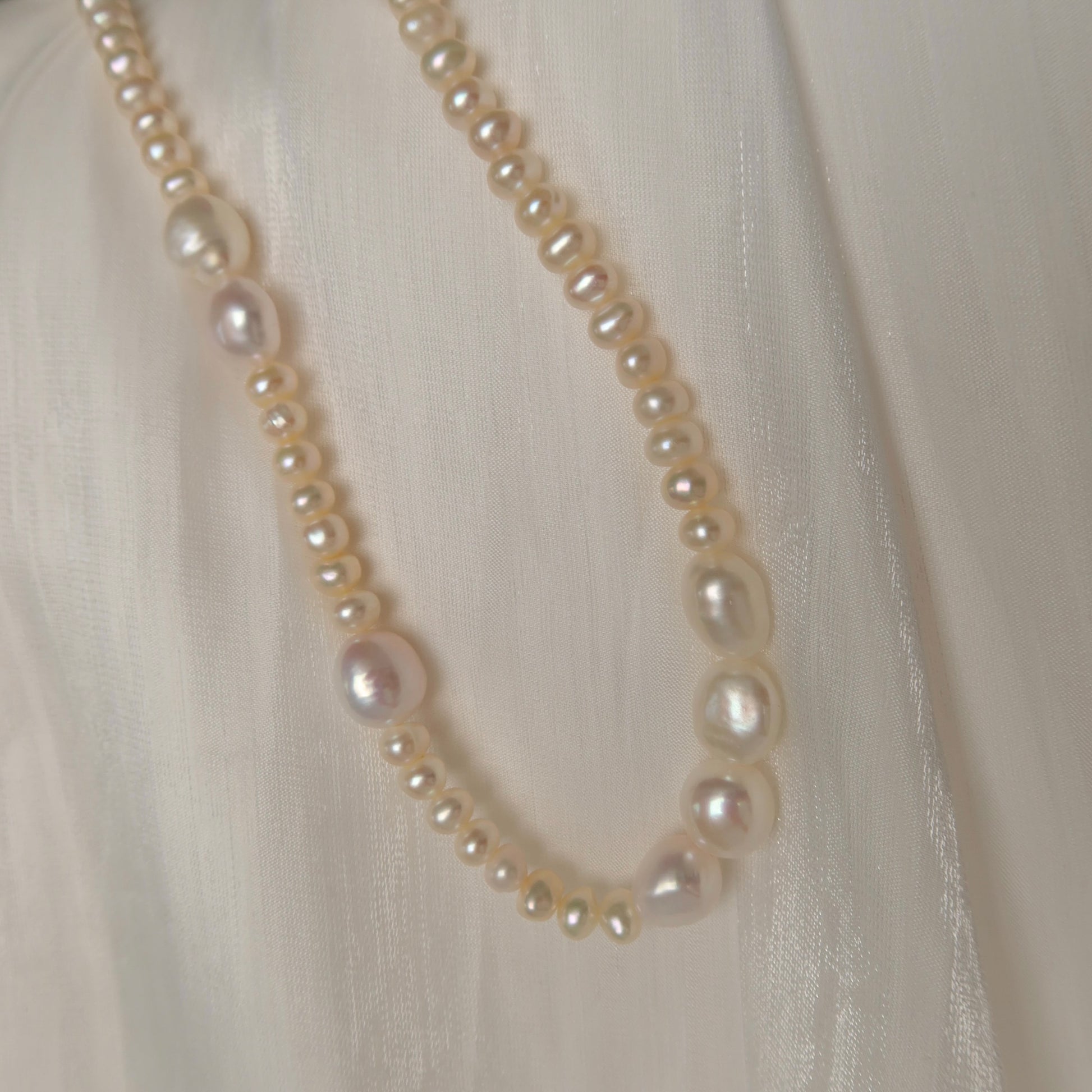 Stunning necklace. The bigger pearls are not uniform, but because the smaller are this makes for an elegant presentation. Well crafted and beautiful