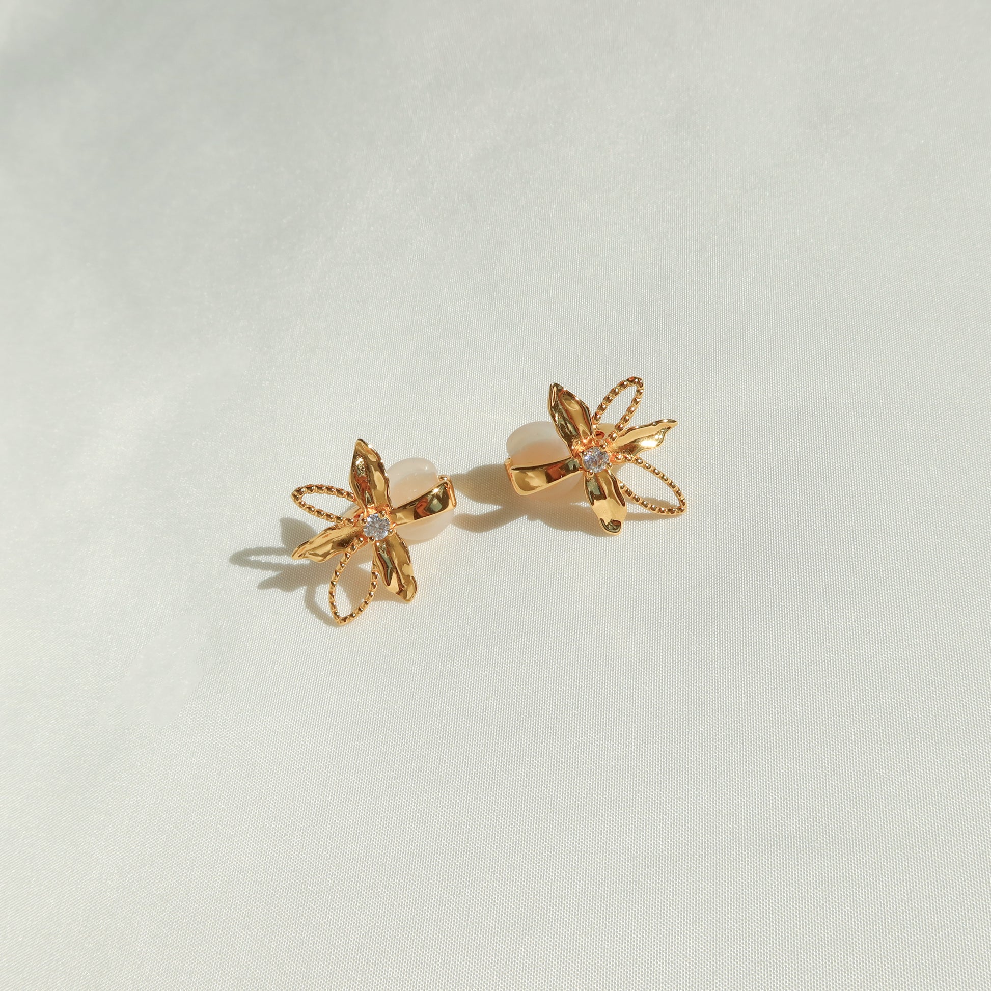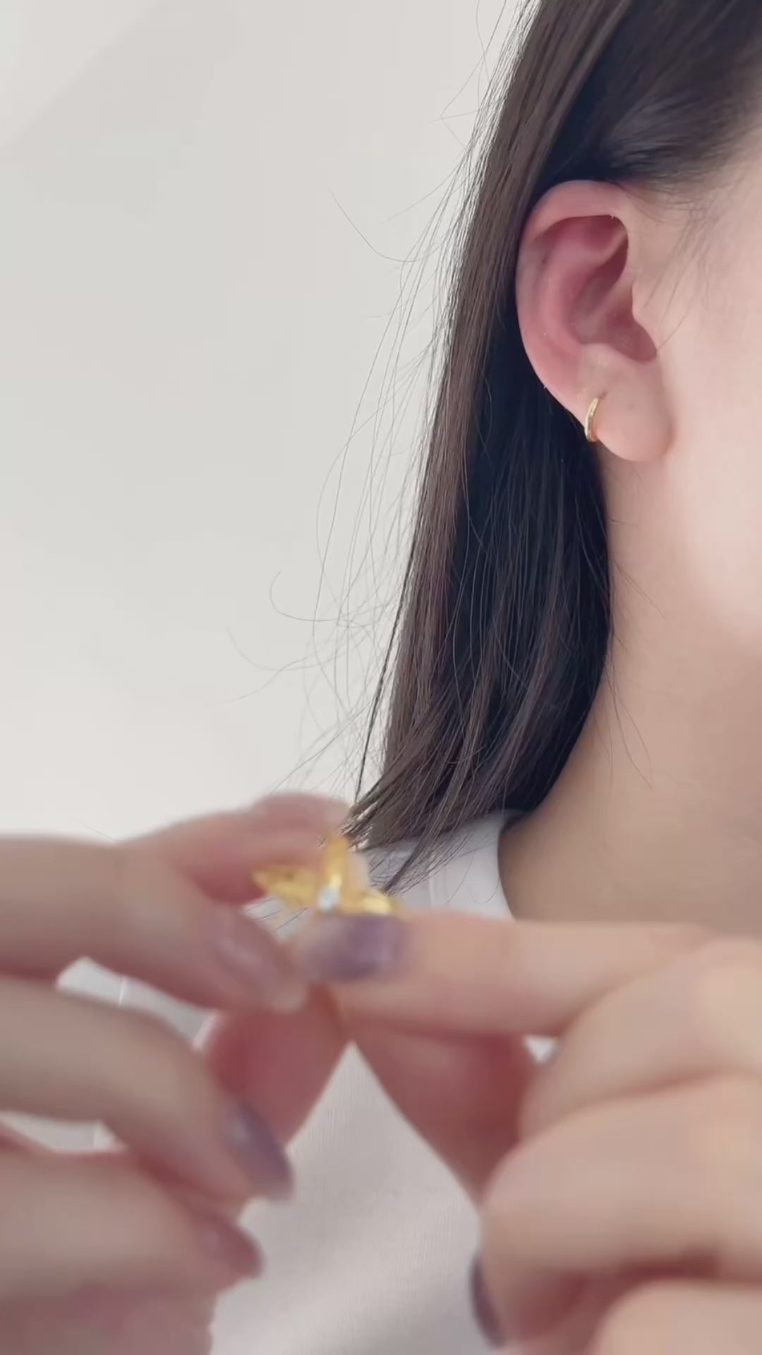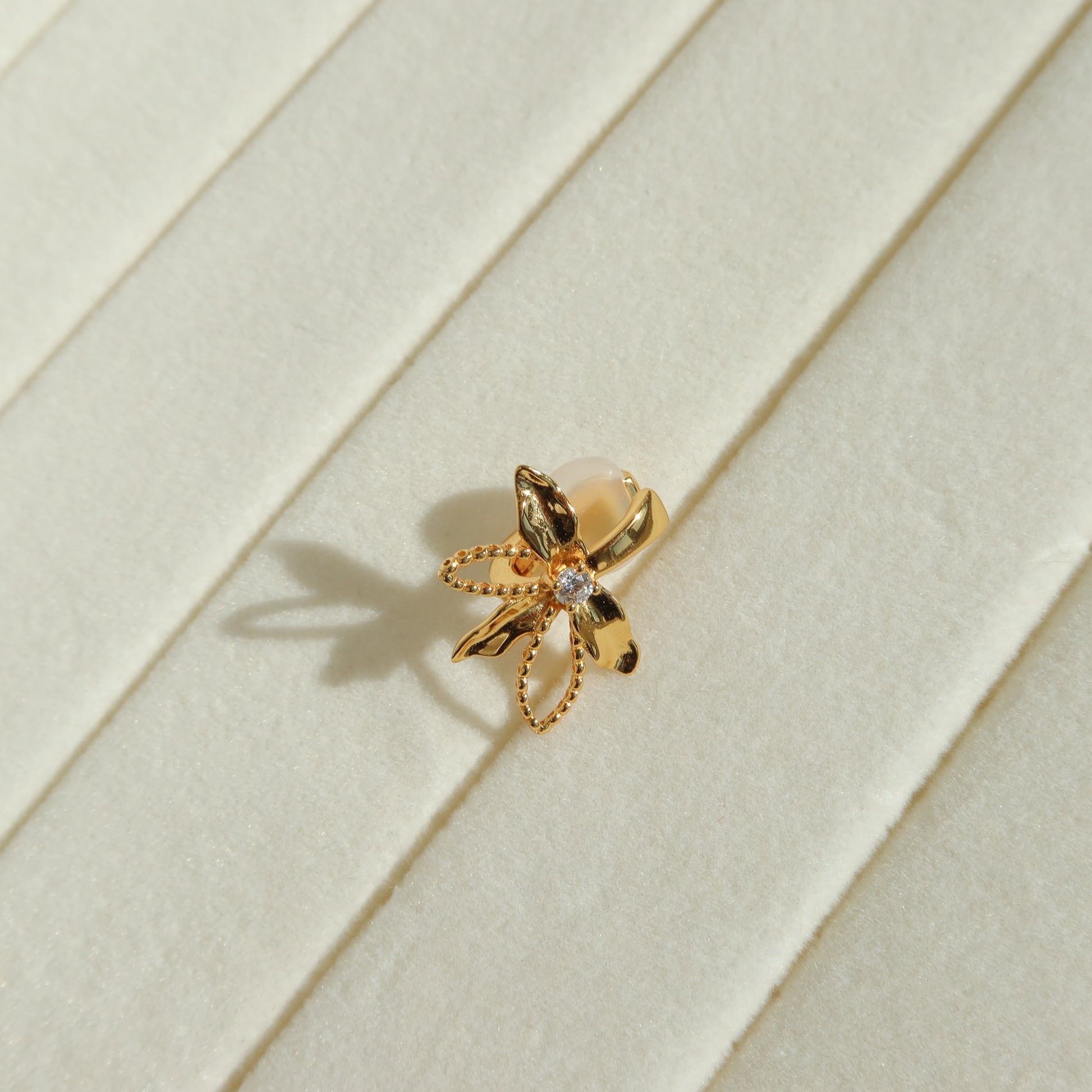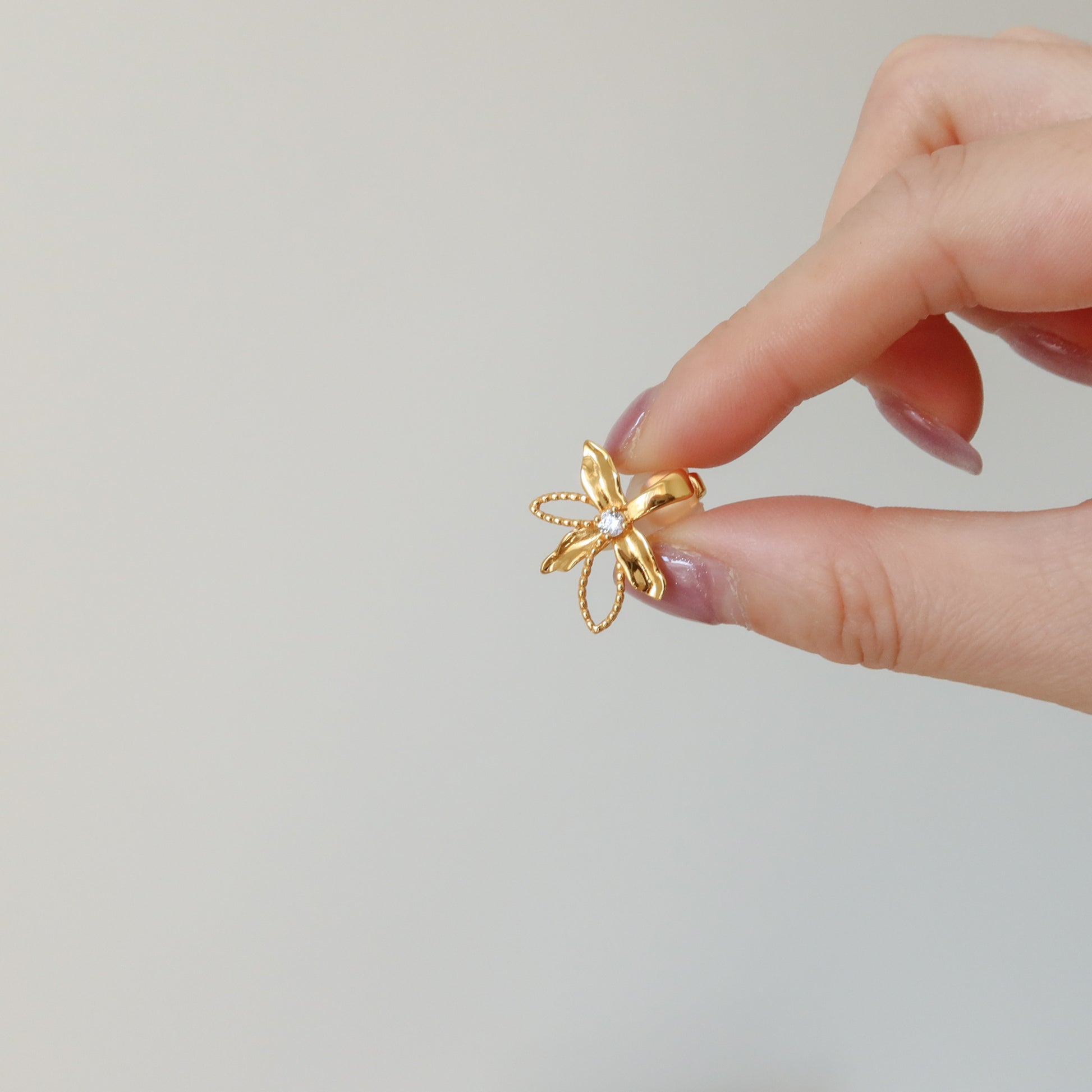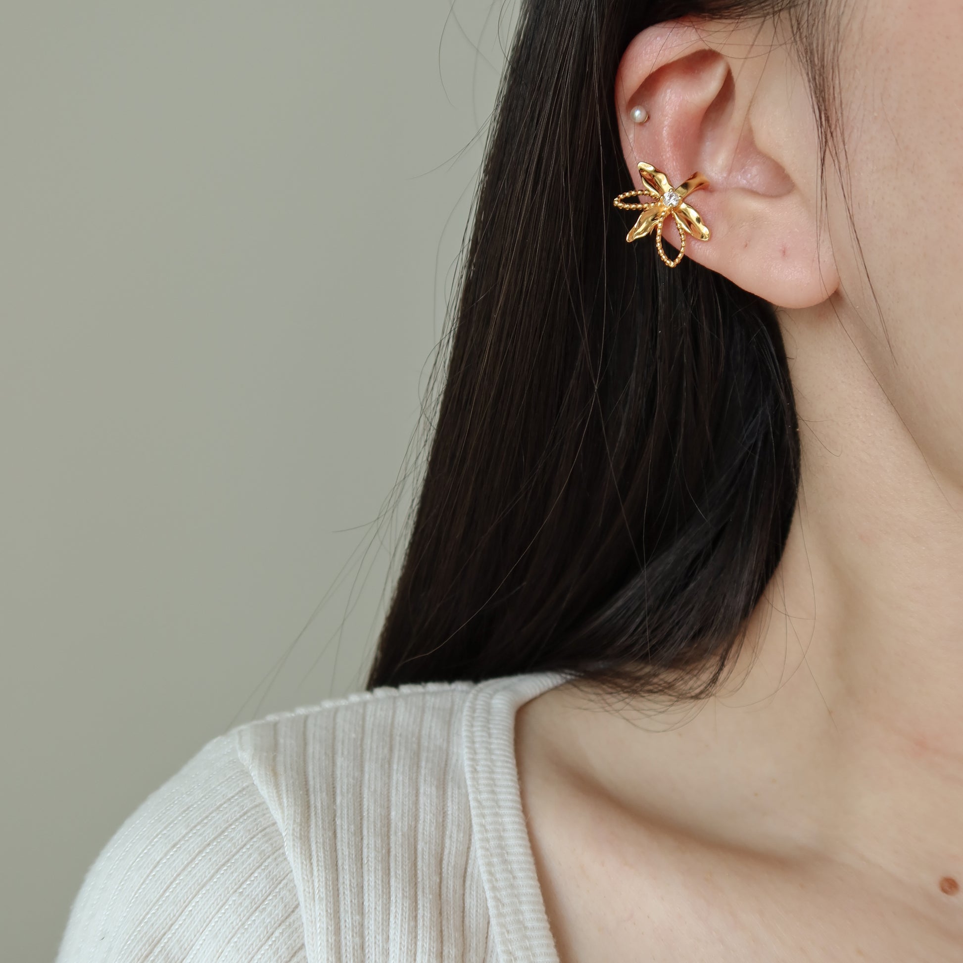 这款金色耳夹精致而引人注目,形状像一朵盛开的百合花,饰有一颗闪耀的白色方晶锆石,更添魅力。设计舒适,柔软的硅胶背衬可轻松开合,全天佩戴毫不费力,无需穿孔。