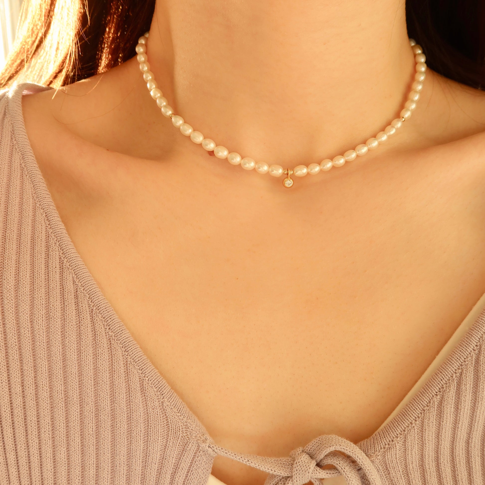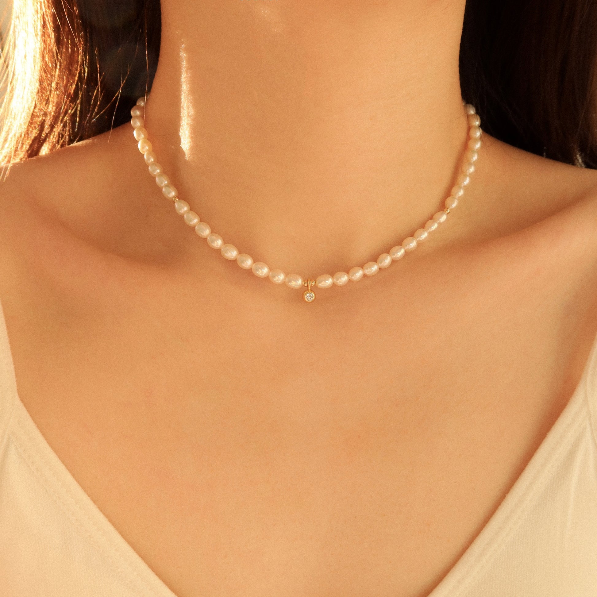 - 我们建议您在淋浴和游泳前取下珍珠首饰,以保持其光泽。水中的氯会长期损害珍珠表面。同样,香水、化妆品和发胶中的化学物质也会腐蚀珍珠层。请在进行日常护肤和化妆后再佩戴珍珠首饰。