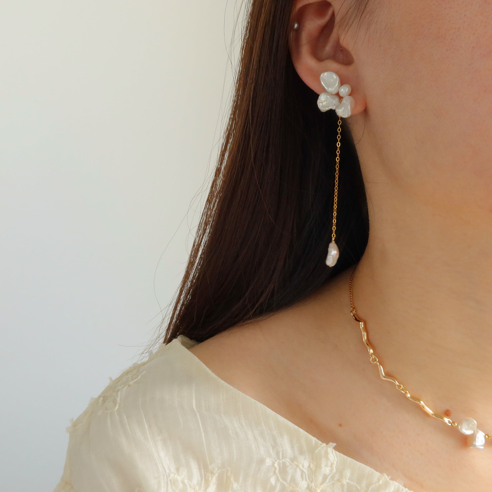 - 我们建议您在淋浴和游泳前取下珍珠首饰,以保持其光泽。水中的氯会长期损害珍珠表面。同样,香水、化妆品和发胶中的化学物质也会腐蚀珍珠层。请在进行日常护肤和化妆后再佩戴珍珠首饰。