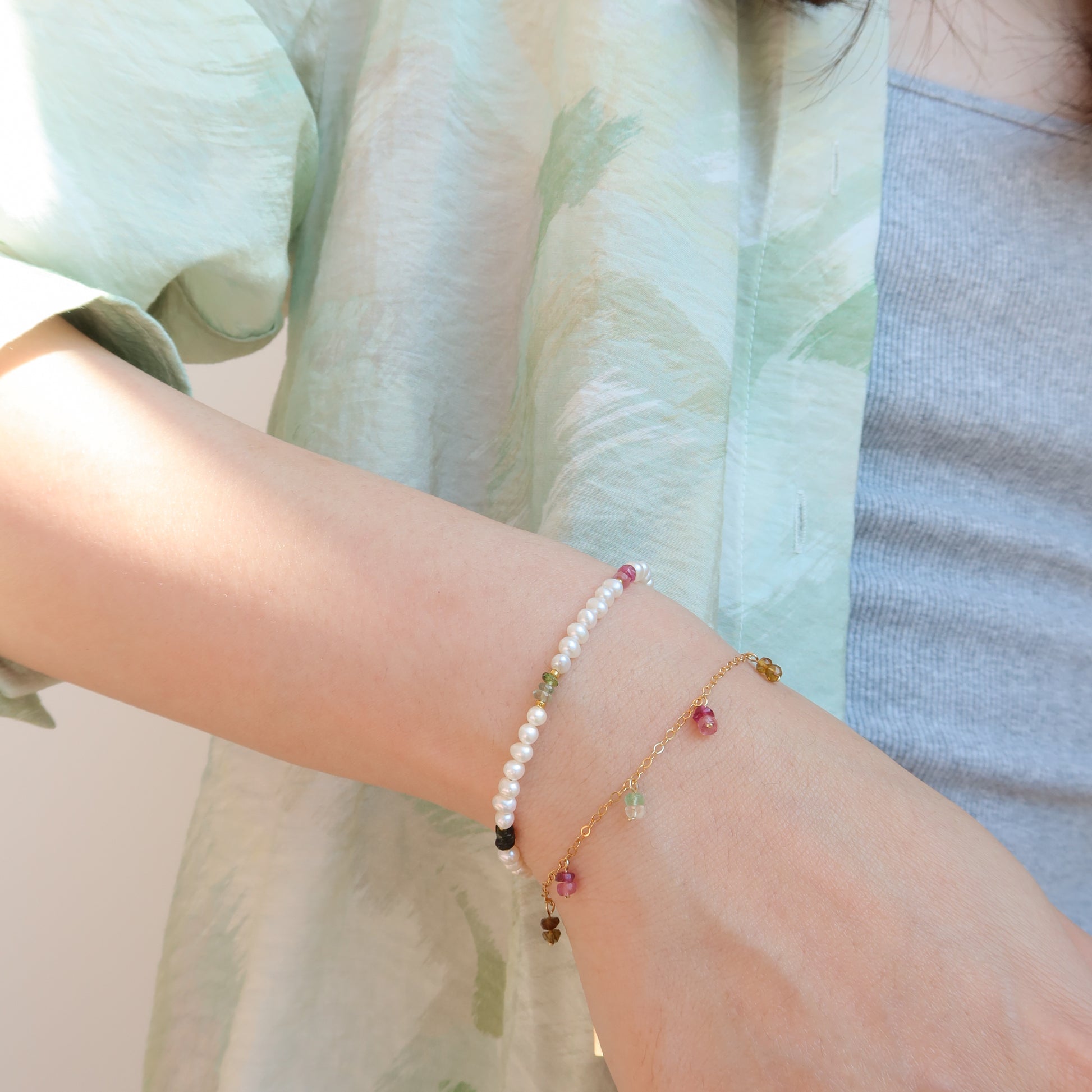 Maia 碧玺和珍珠手链