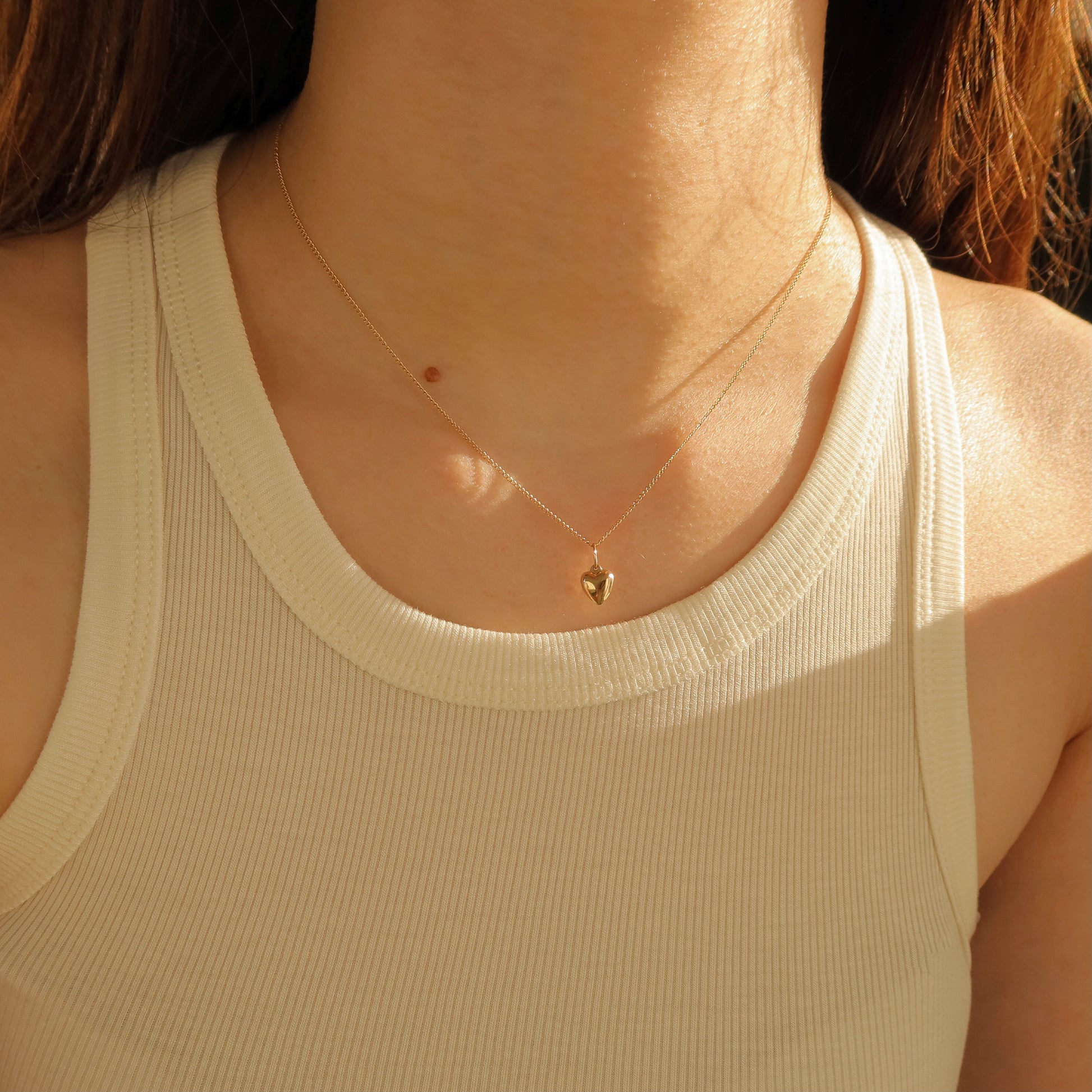 一件简单的作品,却蕴含着满满的爱意。精致的链条上,点缀着一颗包金蓬松心形吊坠。它时刻提醒着你,在需要的时候,要学会爱自己。