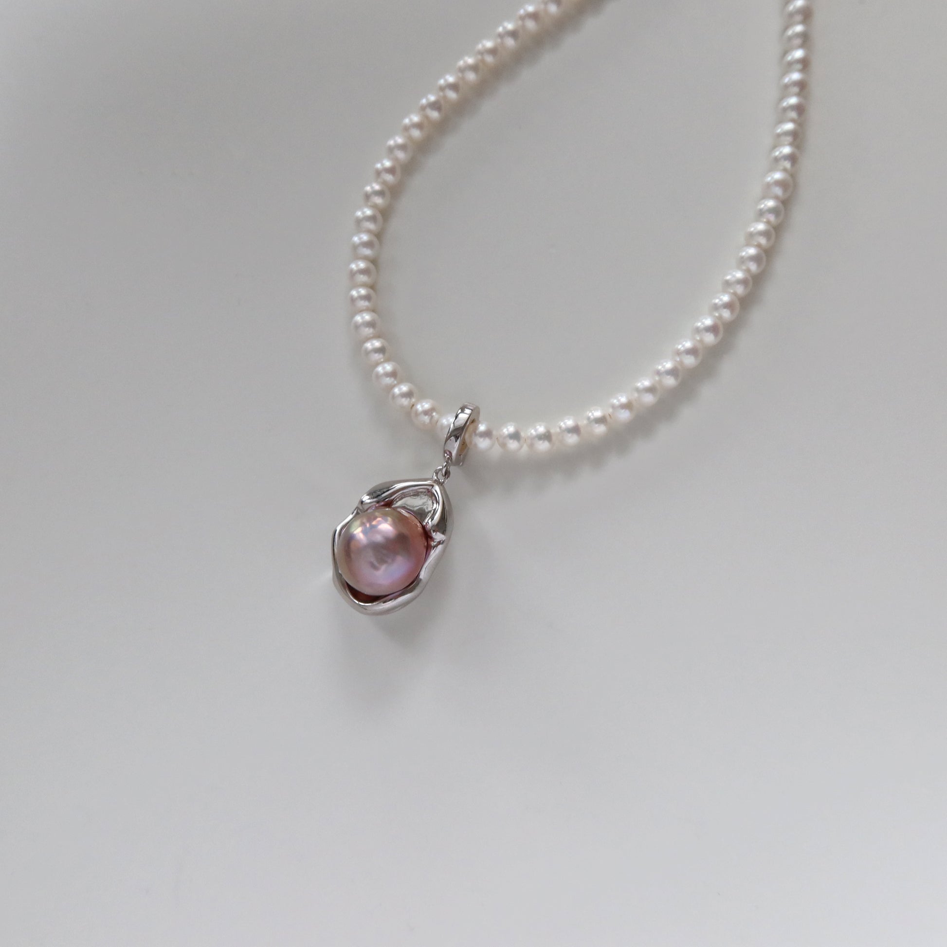 紫色珍珠镶嵌吊坠项链,兼具隽永优雅与百搭实用。一颗璀璨夺目的巴洛克紫色珍珠,散发迷人光泽,色彩缤纷,镶嵌于纯银配饰之上,尽显精致优雅。
