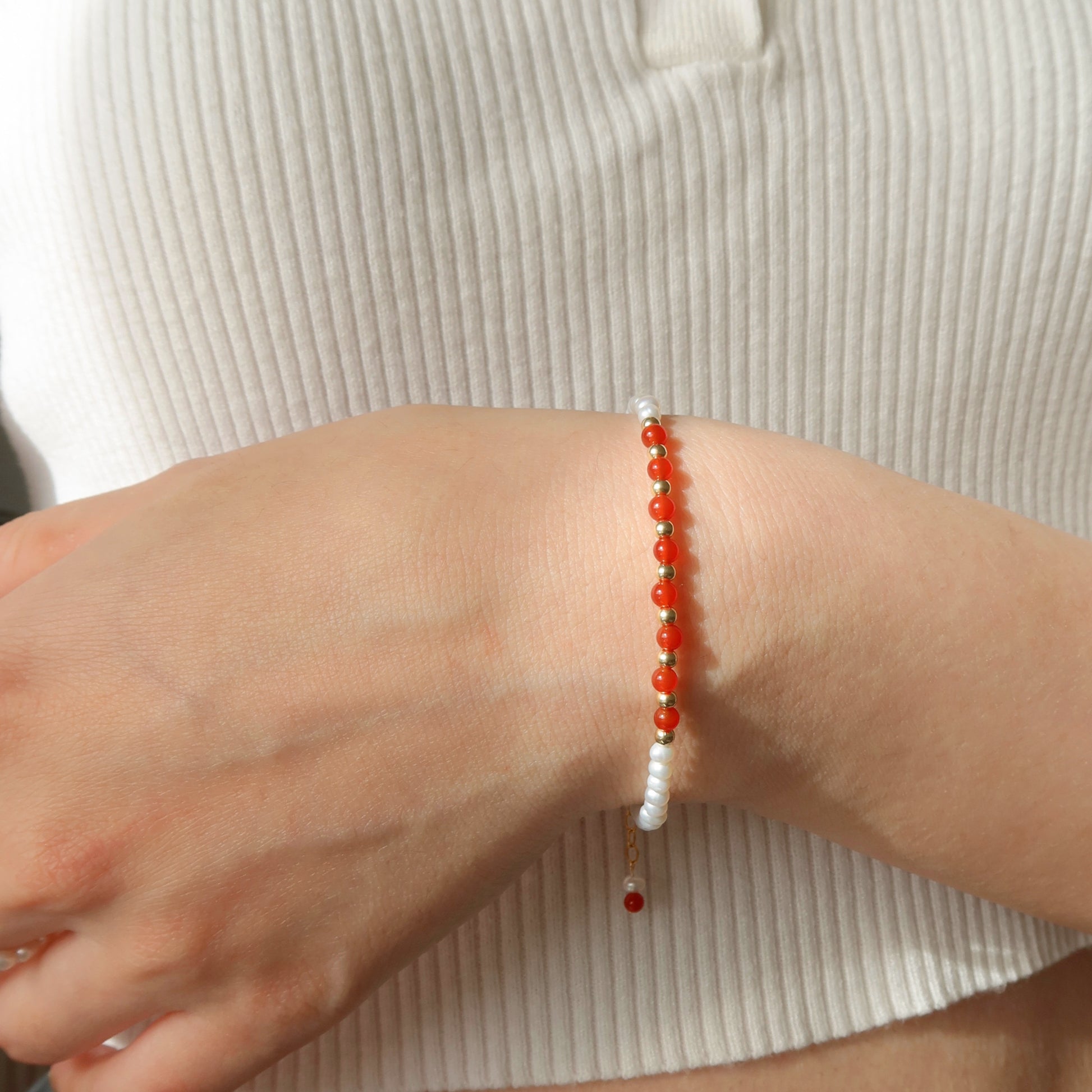 红玛瑙和珍珠串珠手链