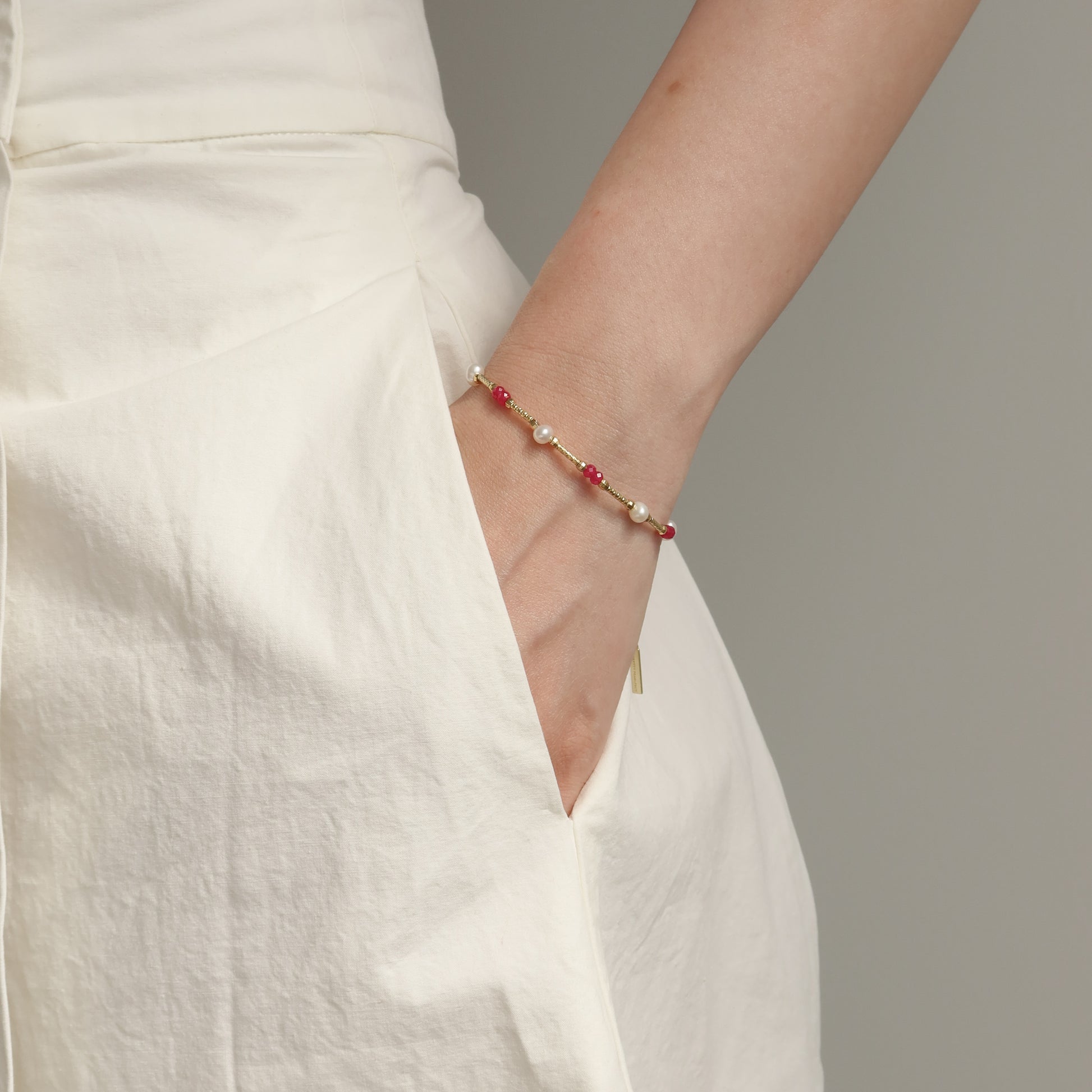 红宝石和珍珠手链