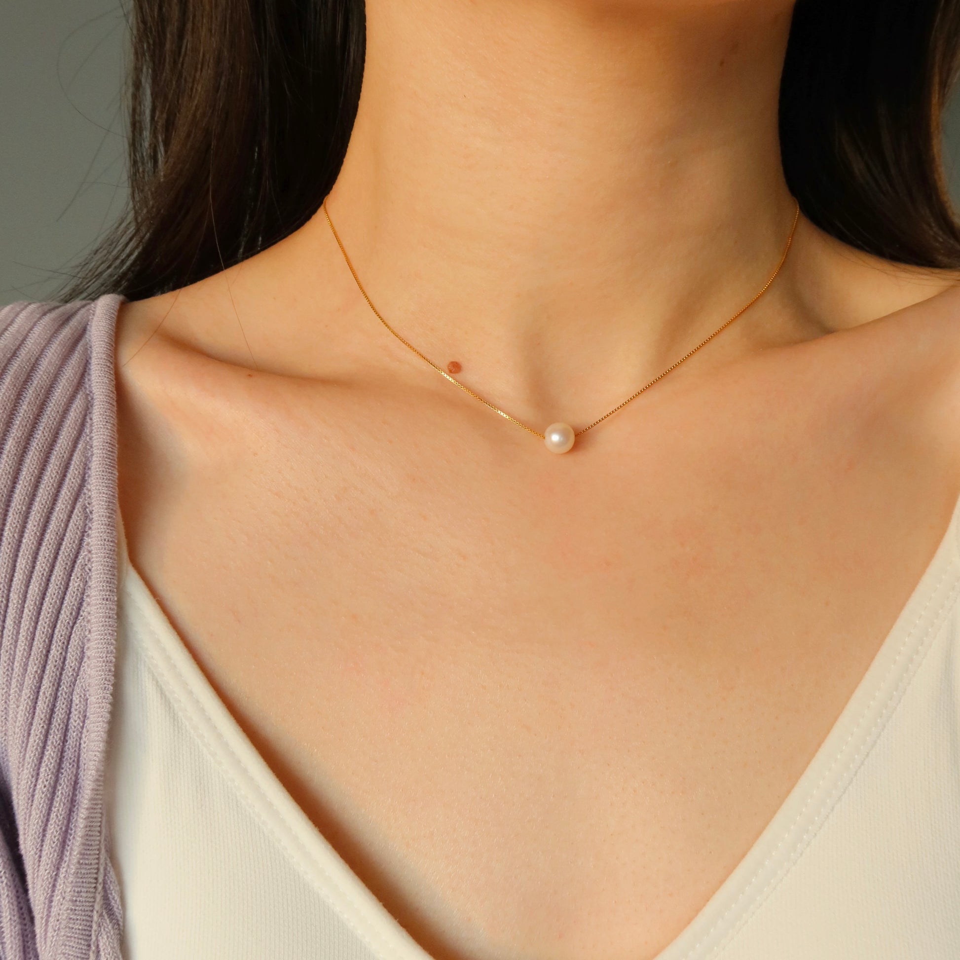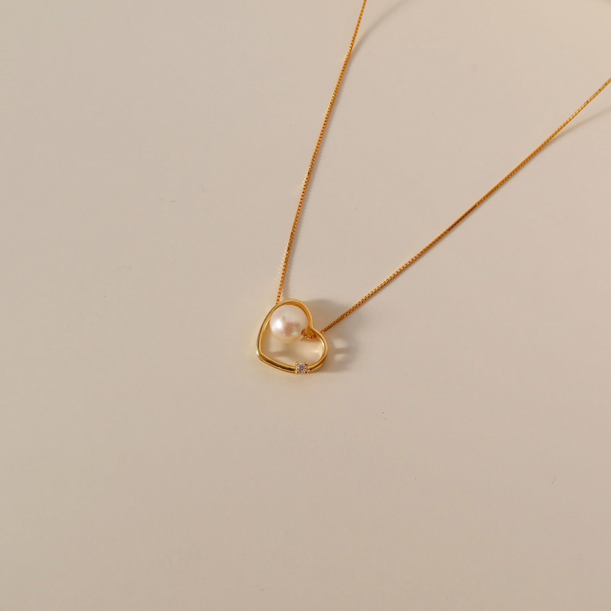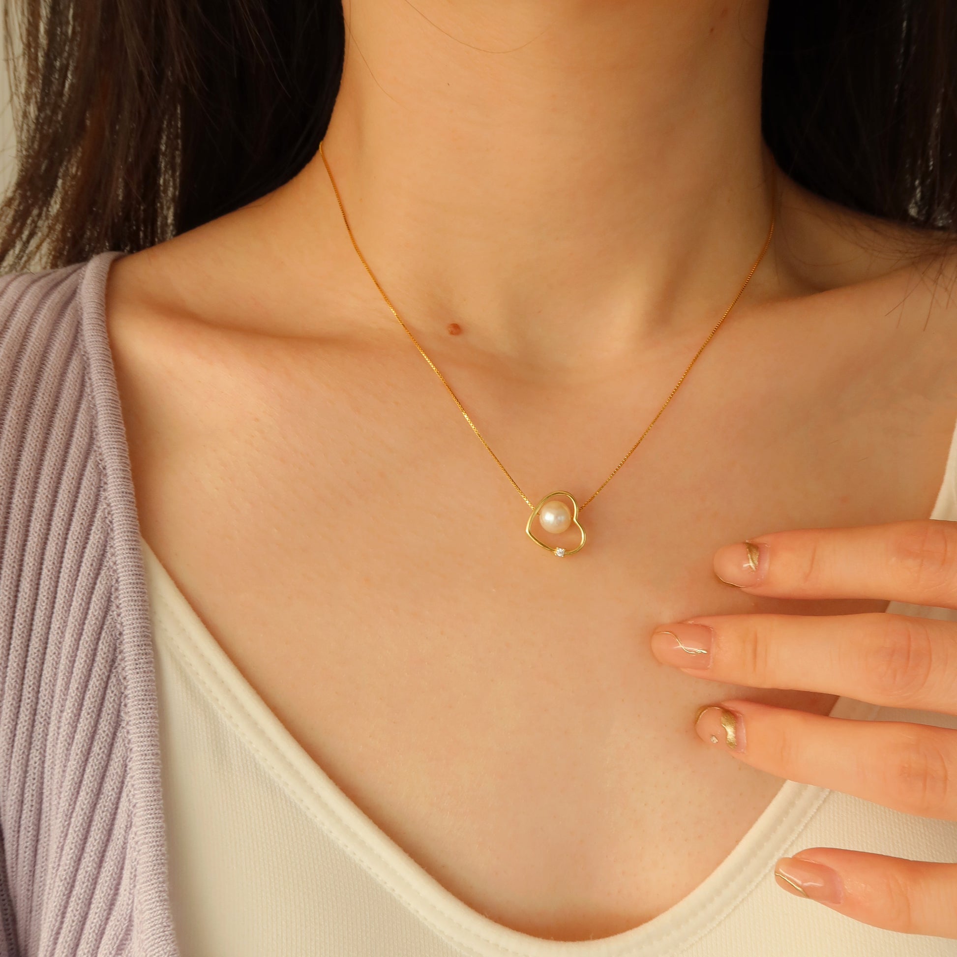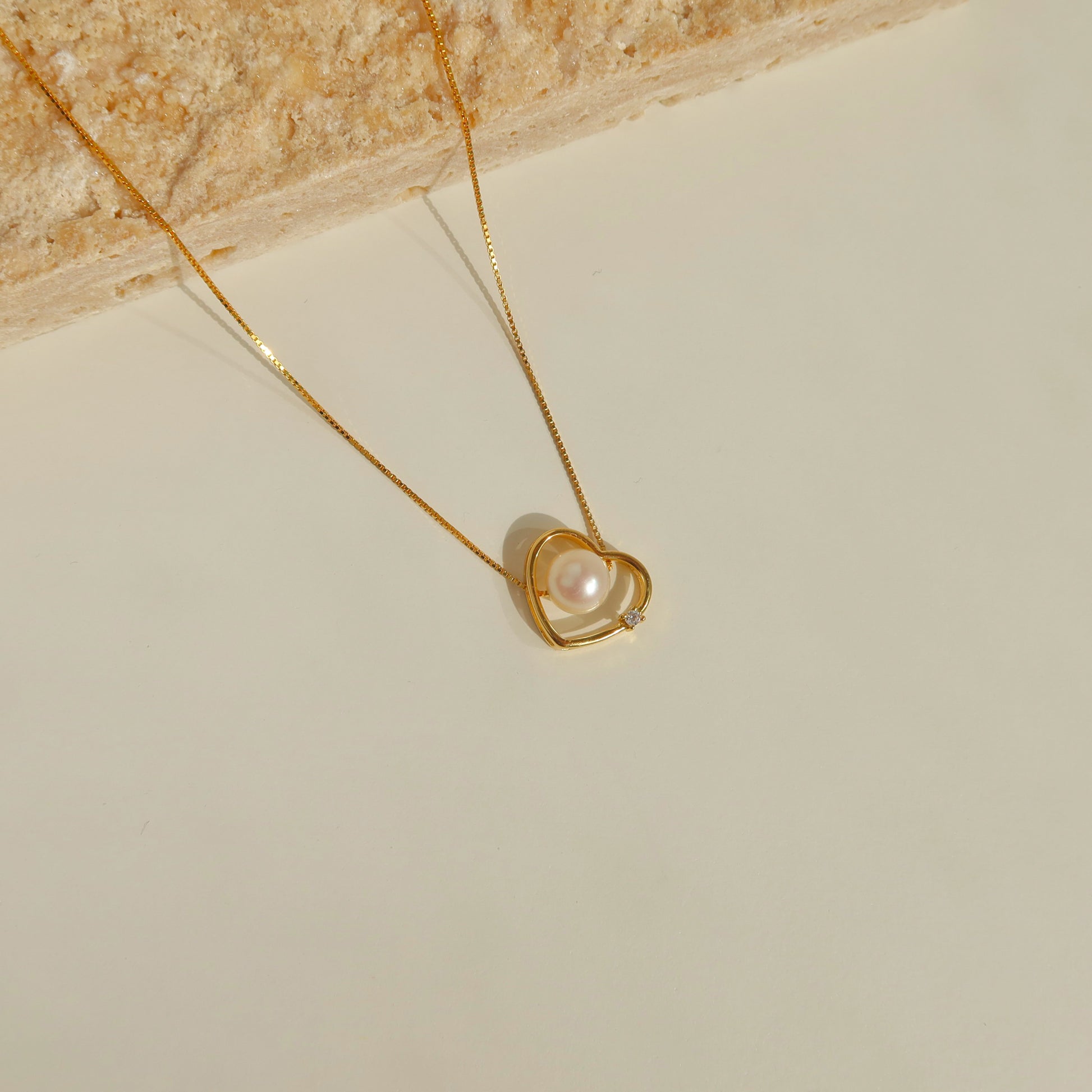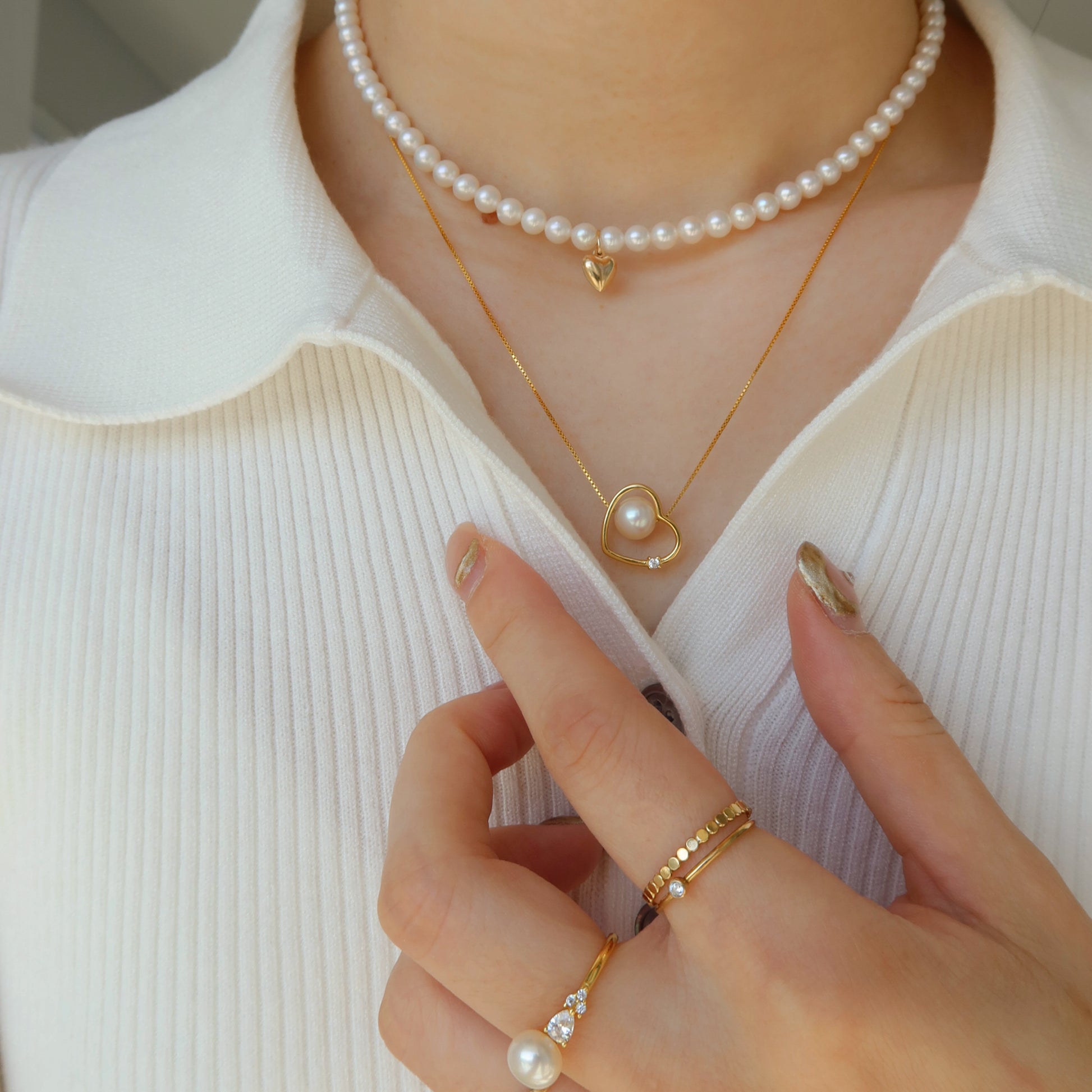 这款百搭项链由一颗淡水珍珠和一颗镶有立方氧化锆石的心形吊坠组成。珍珠和心形吊坠均可通过可调节的方形链条拆卸,单独佩戴即可。