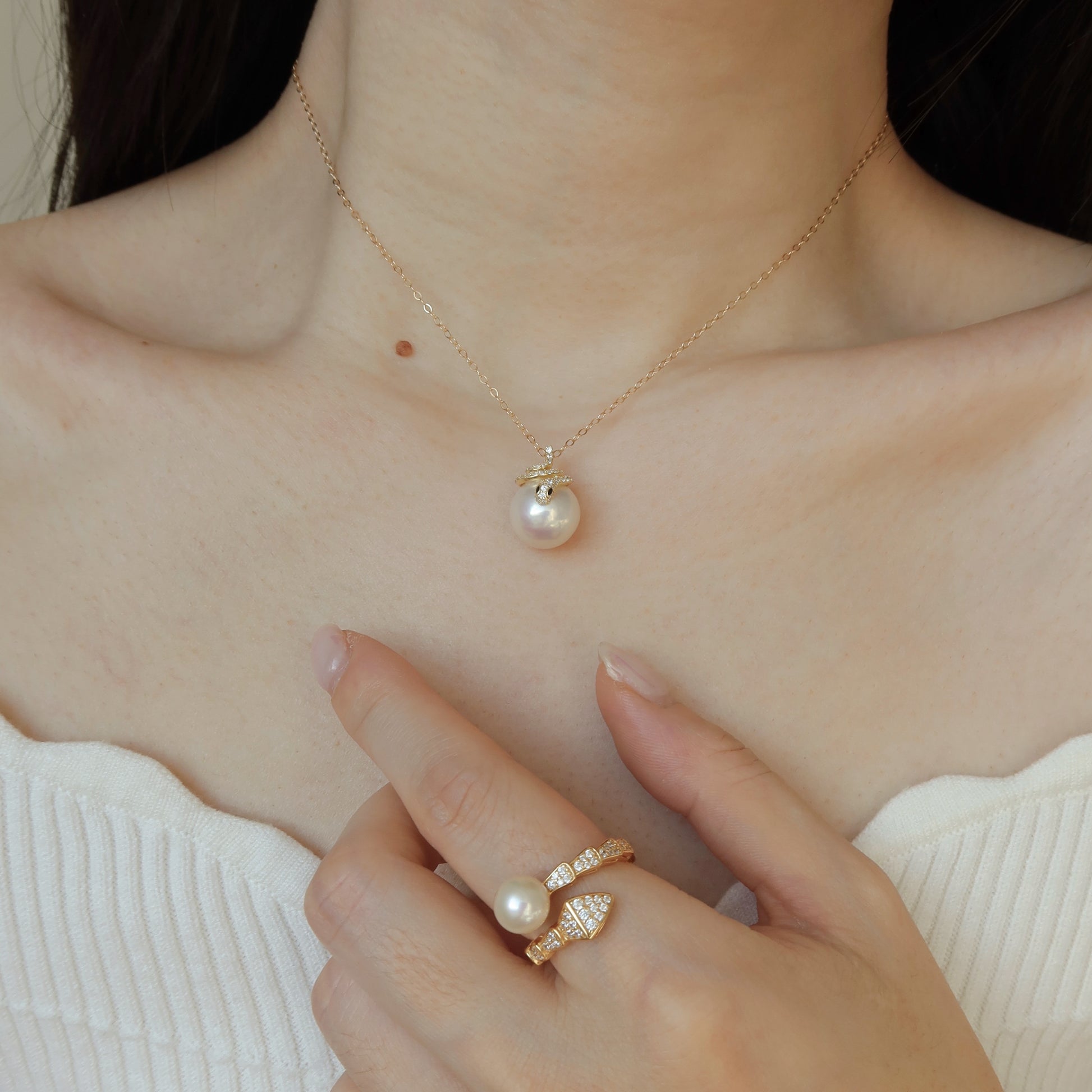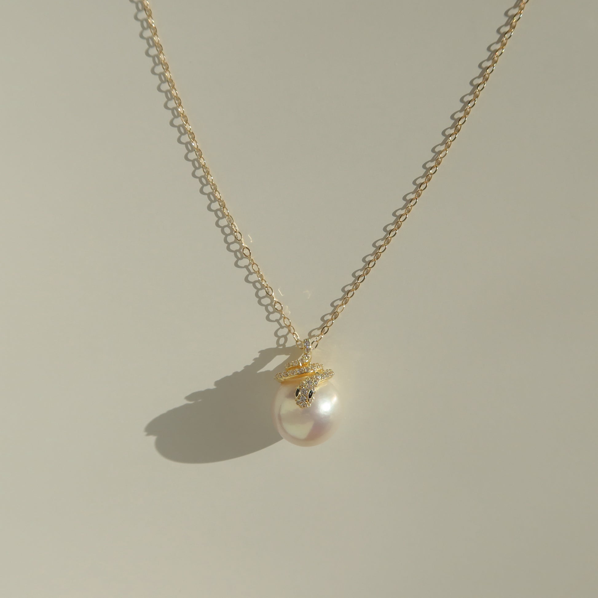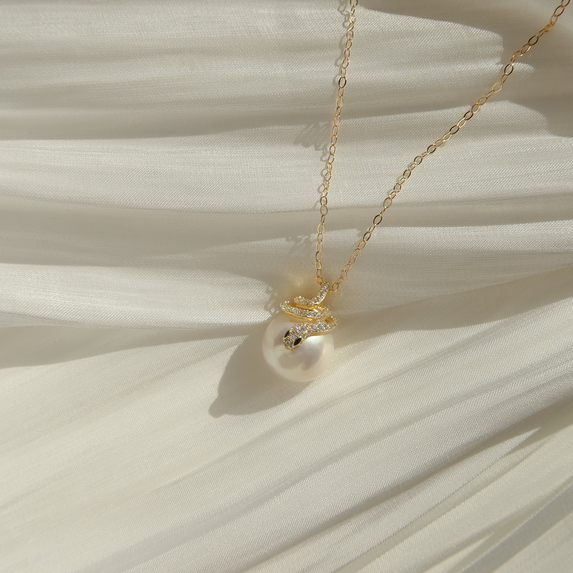 蛇身上闪闪发光的密镶细节为珍珠增添了光彩,使这款项链成为任何场合独特而有意义的配饰。