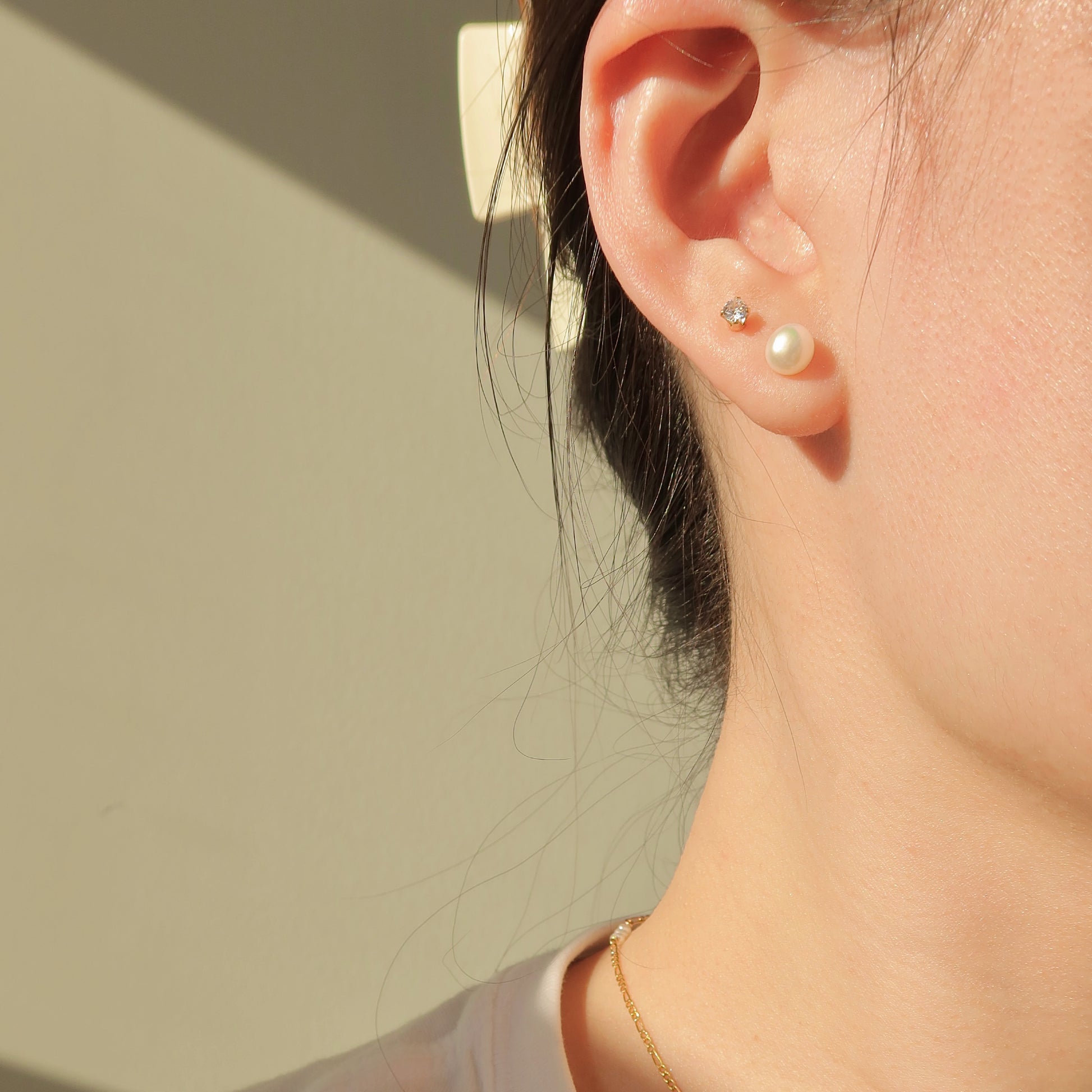 这款耳钉完美搭配您的耳饰。采用方晶锆石和14K镀金耳钉,淋浴时佩戴安全,敏感肌肤也可佩戴。精致小巧,可佩戴于任何耳洞。