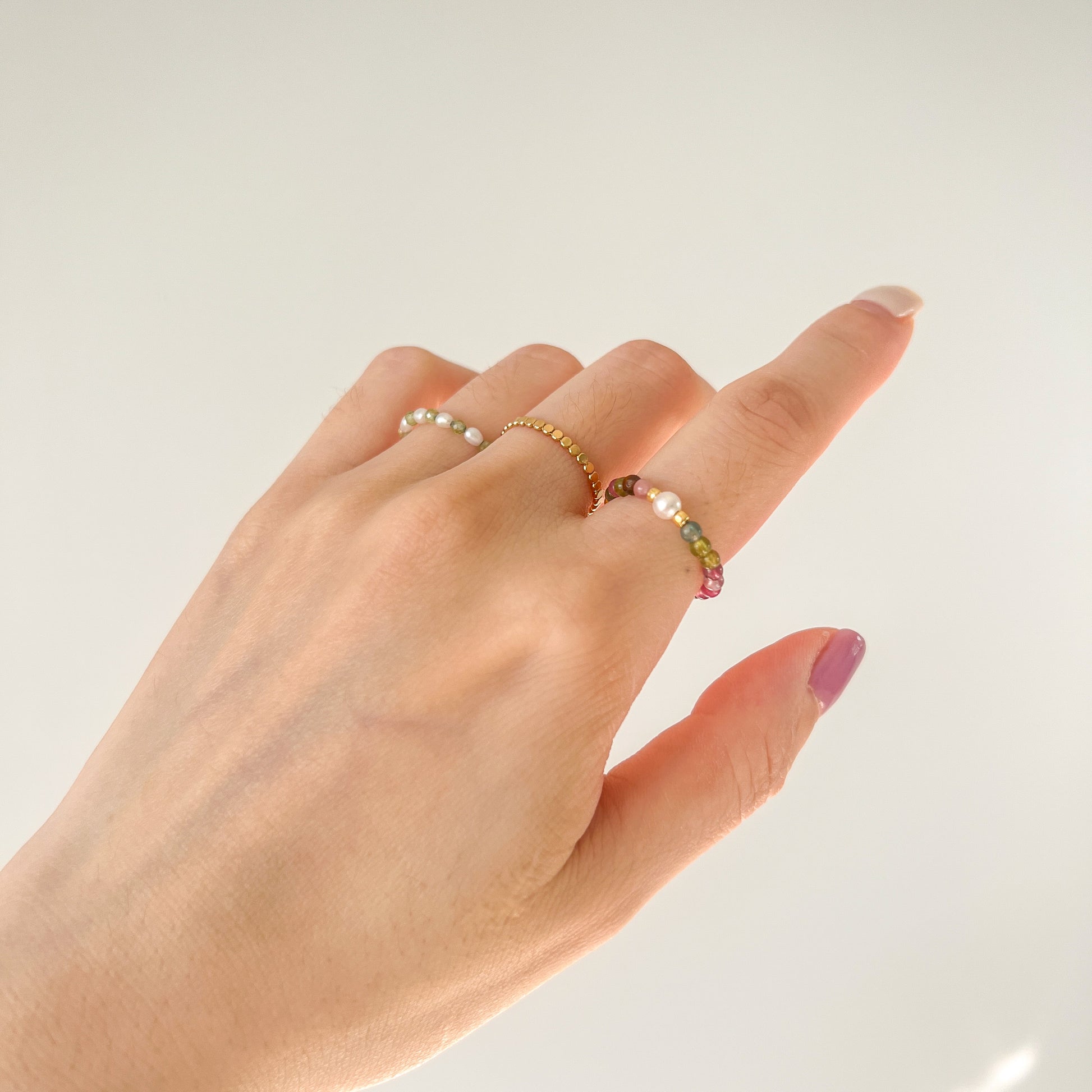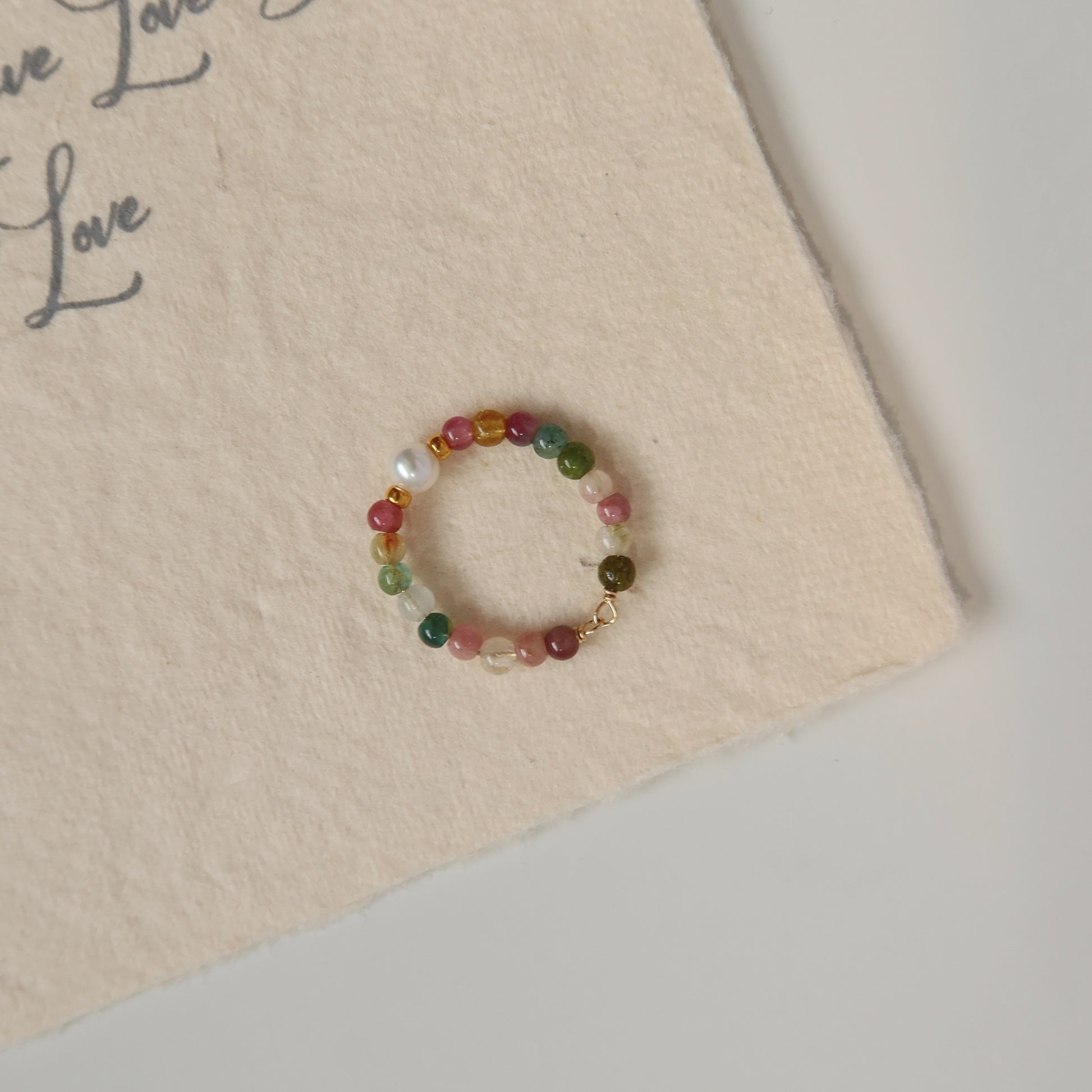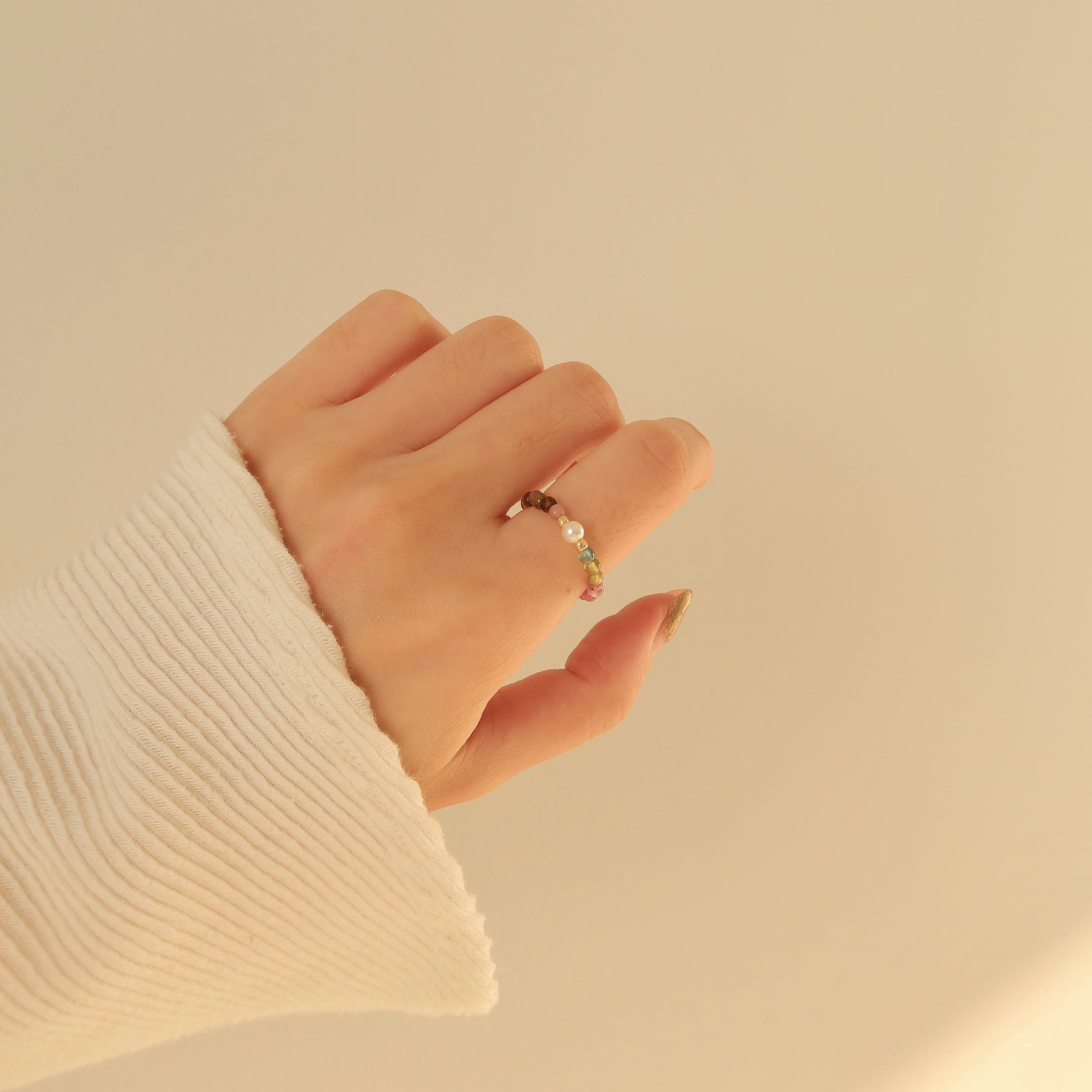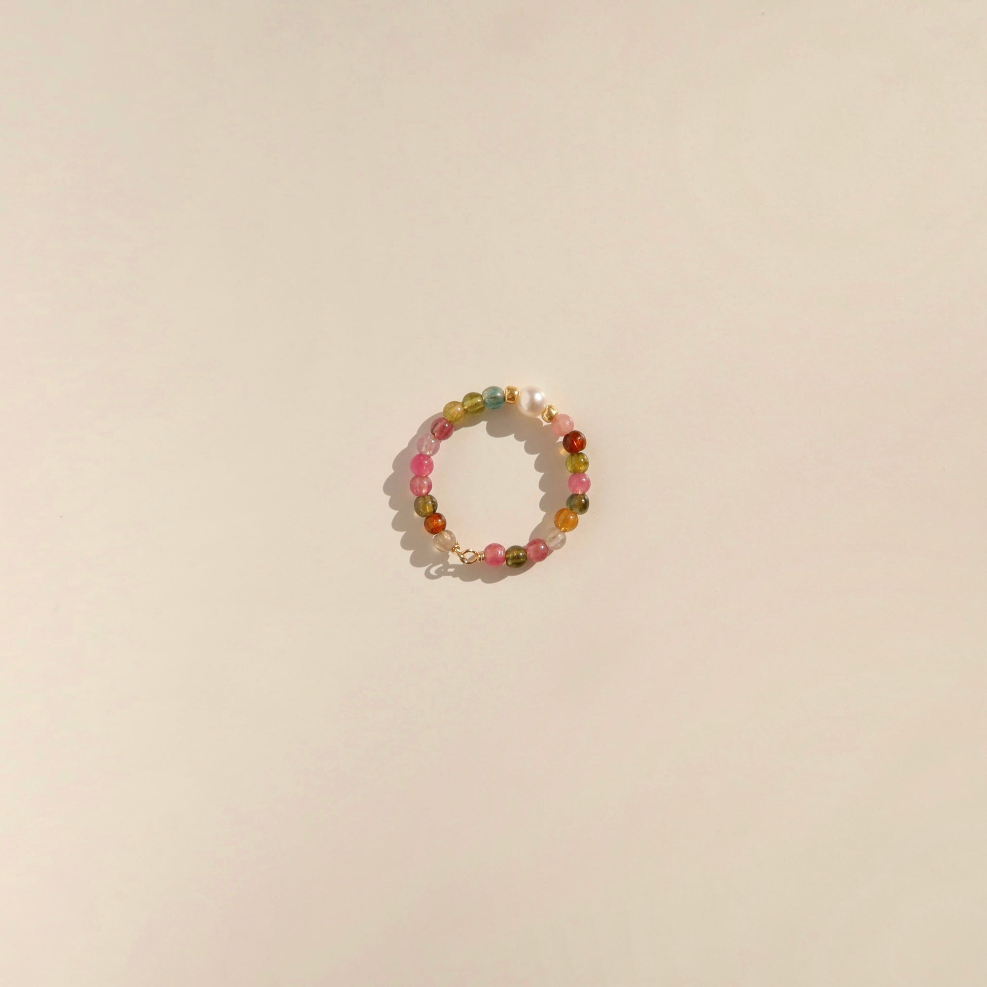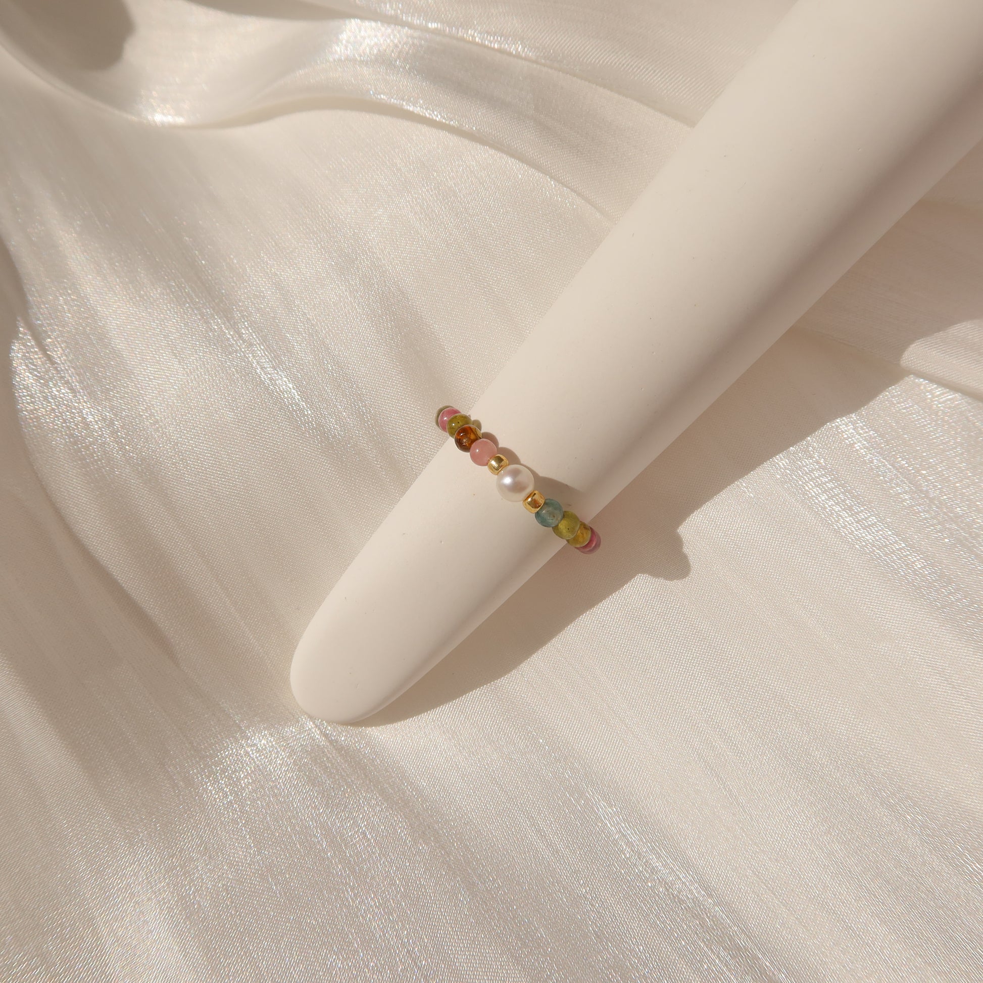 这个秋季,佩戴色彩缤纷的宝石吧!这款戒指采用小巧的珍珠、镀金珠子和彩虹碧玺手工打造而成。碧玺能为人们的生活带来快乐、放松和幸福。它与碧玺珍珠项链手链完美搭配。