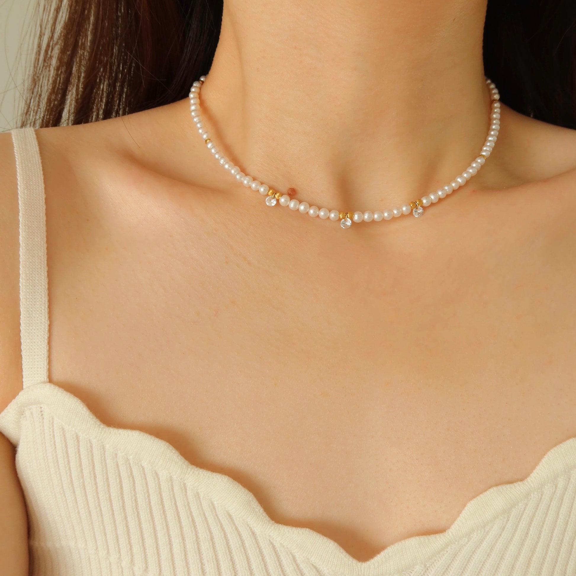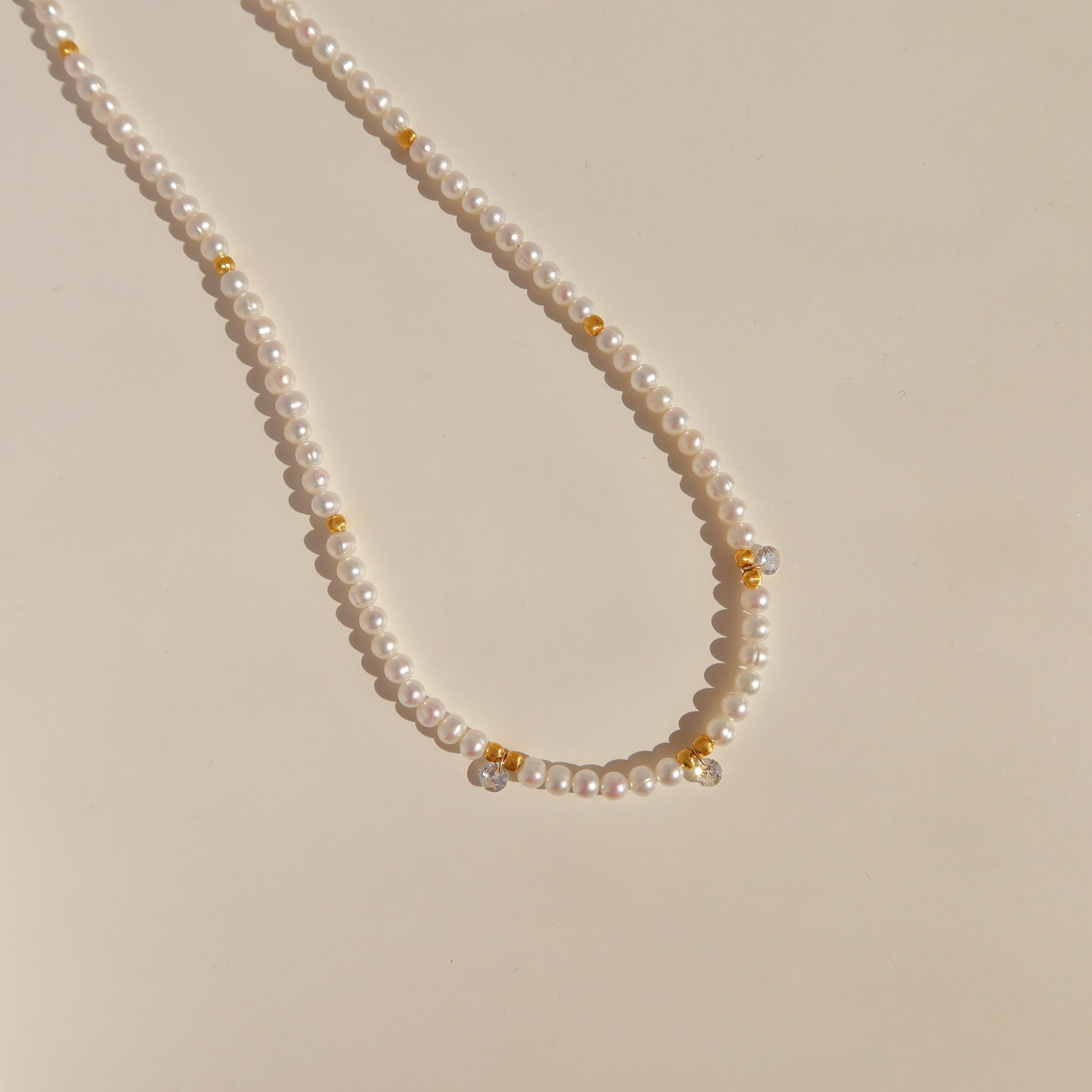 这款隽永的珠宝以璀璨的金珠和闪耀的珍珠精制而成,点缀着璀璨的方晶锆石串饰,无论是夜晚出游还是日常佩戴,都能让您的魅力闪耀夺目,留下持久的印象。