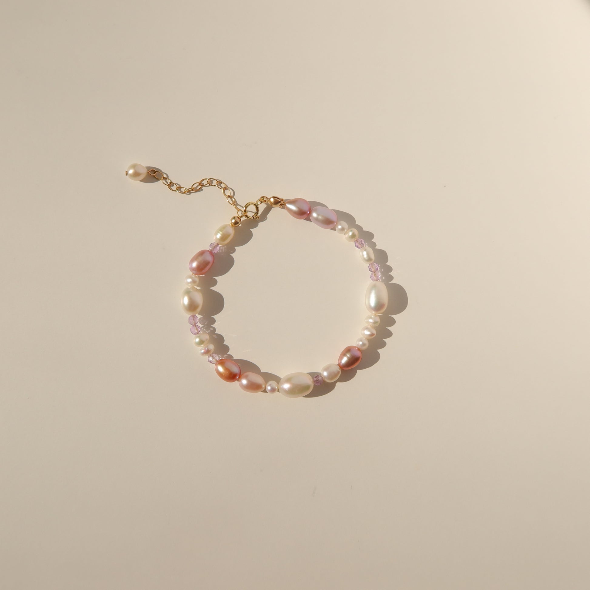 - 各种尺寸的淡水珍珠和 2.5 毫米紫水晶。